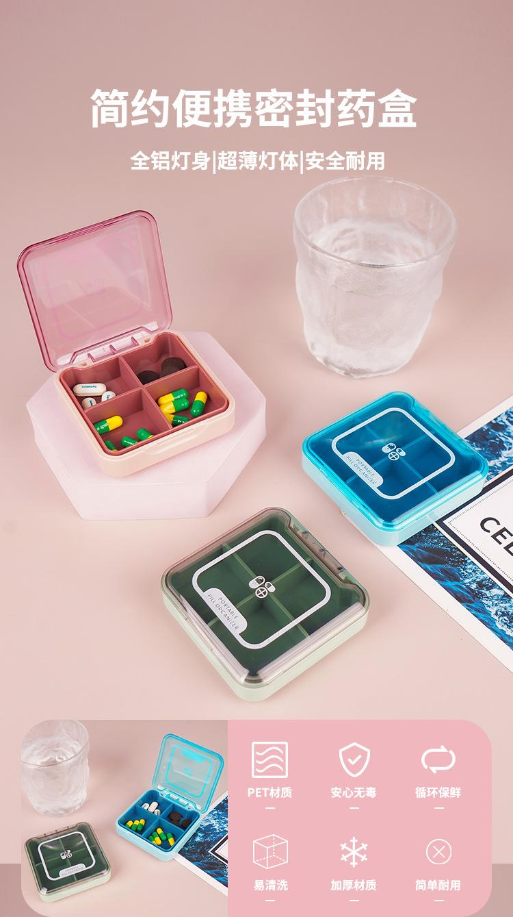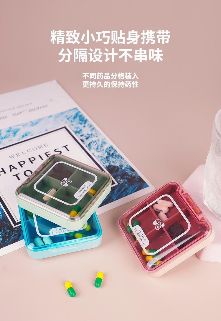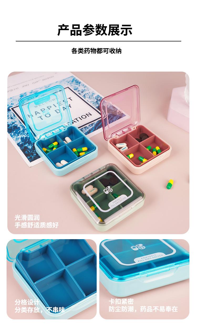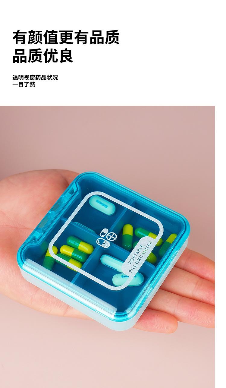 Pastillero dividido nuevo, Pastillero pequeño de cuatro compartimentos, Caja de almacenamiento de plástico para pastillas, Pastillero cuadrado, Caja pequeña portátil para viaje