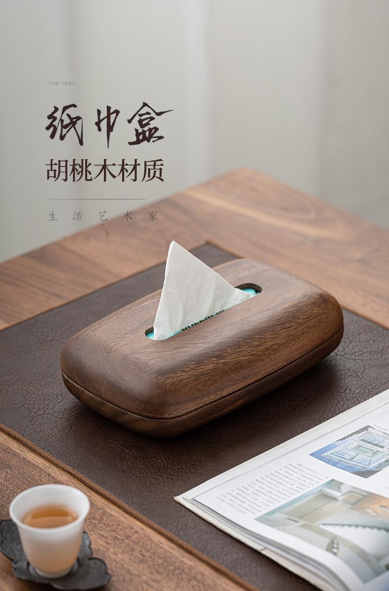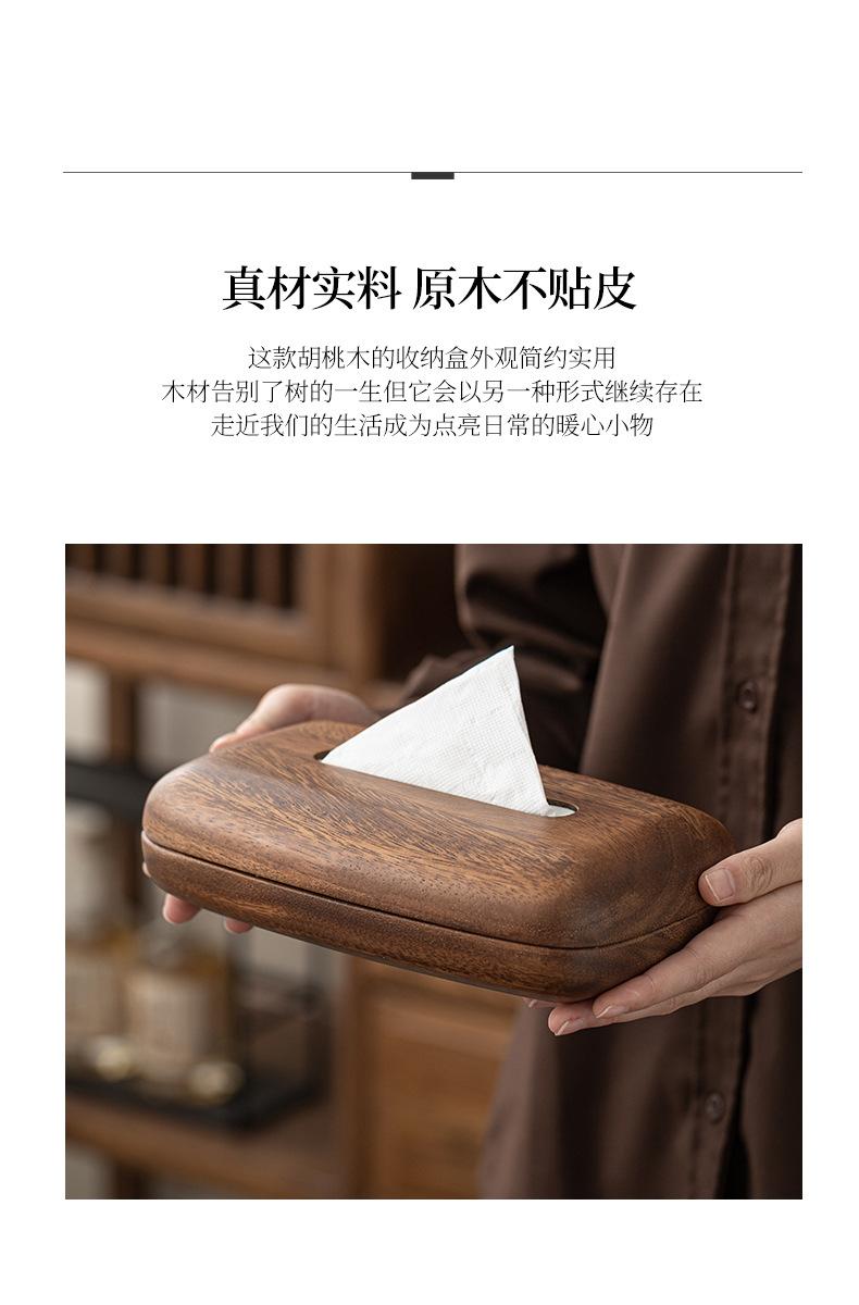 Caja de pañuelos de nogal, decoración de escritorio, mesa de centro, caja de papel, caja de pañuelos de madera maciza, caja de servilletas chinas para el hogar y la sala de estar