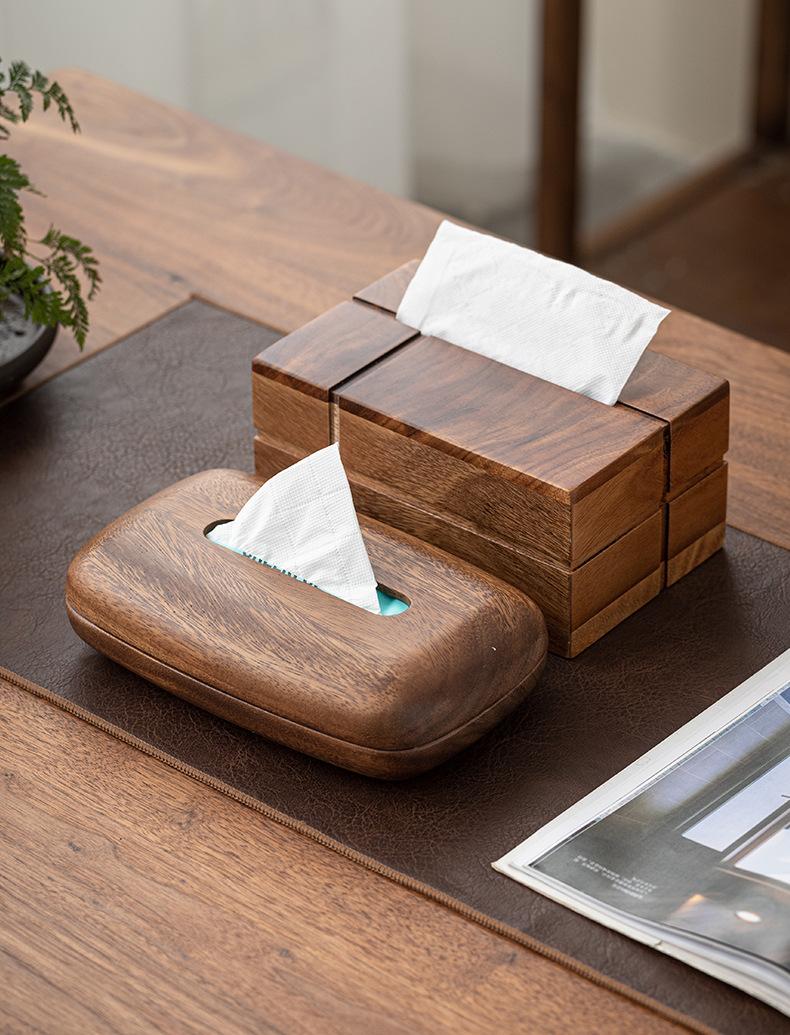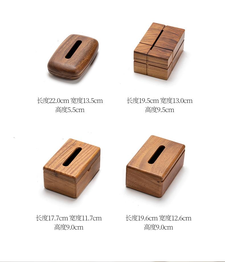 Walnut tissue box-four grid, Walnut tissue box-rounded rectangular (small), Walnut tissue box-rounded rectangular (large)
