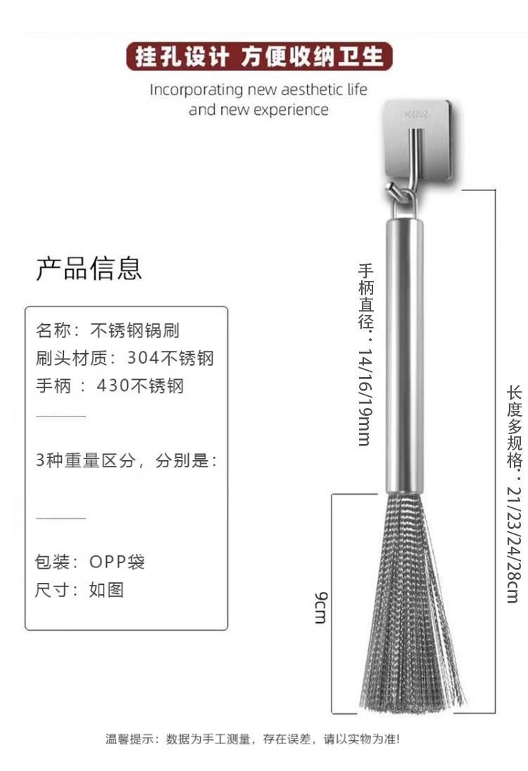 Cepillo de cocina de acero inoxidable, especial para limpieza y desinfección de ollas (no requiere colgar). Cepillo de alambre de acero con mango largo para lavar platos.