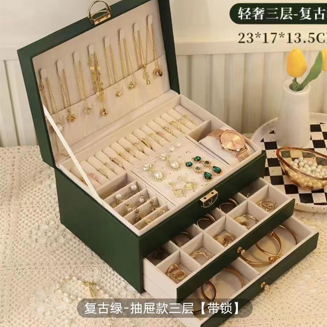 Caja de Almacenamiento de Joyas con Cajón Triple en Forma de Diamante Caja de Princesa Caja de Joyas Dormitorio Tocador Caja de Joyas Joyas