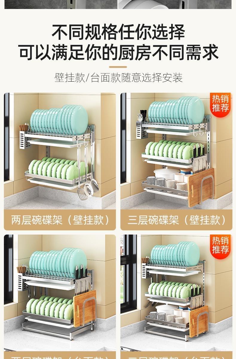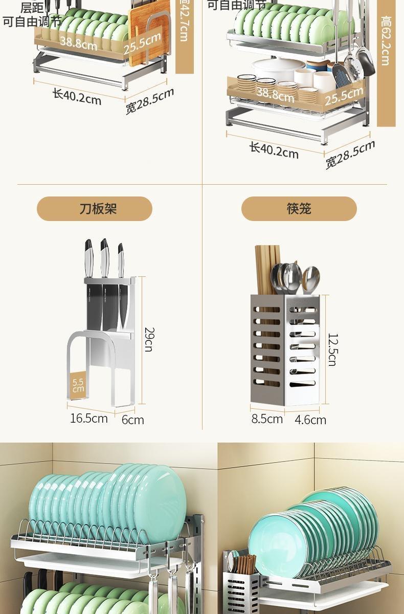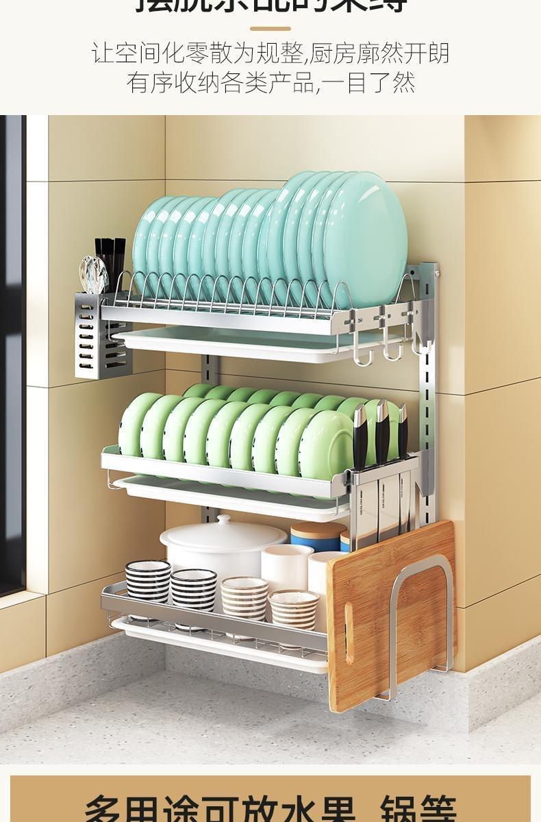 Estante de cocina de acero inoxidable Aoqun, escurridor de platos sin perforaciones, suministros para colgar en la pared