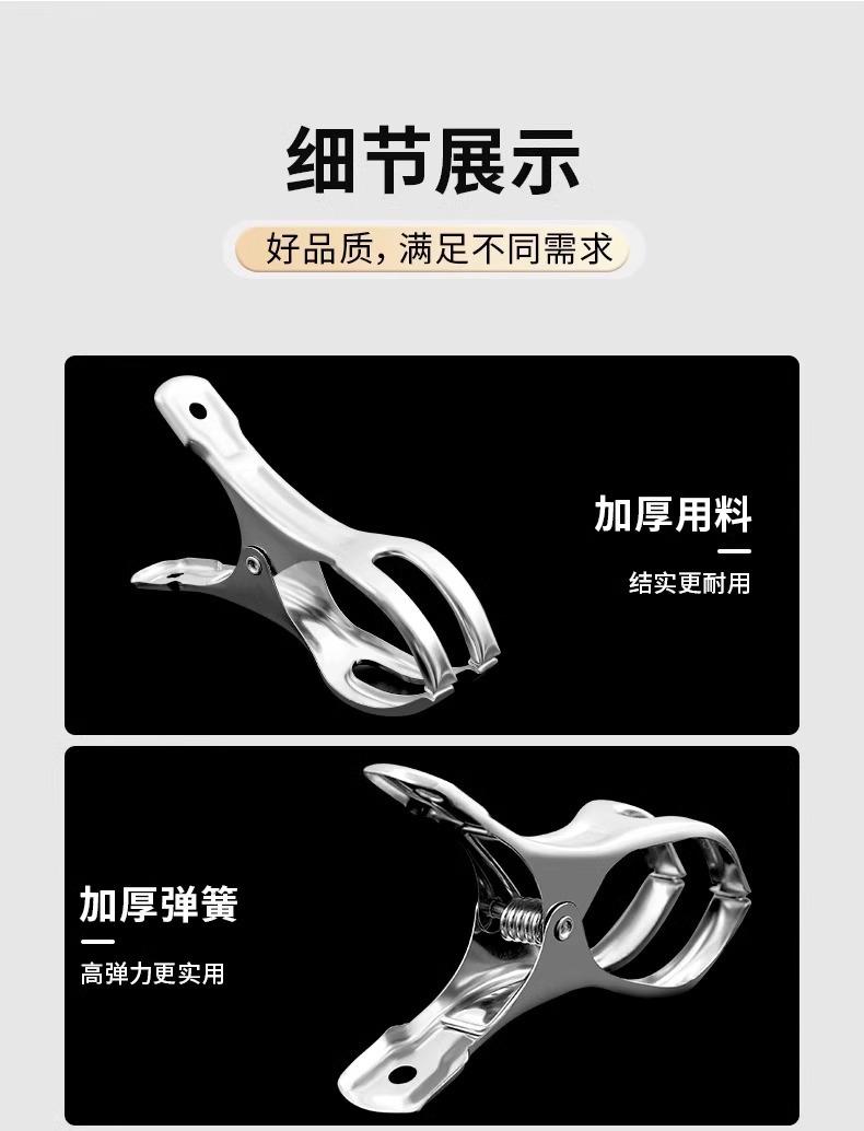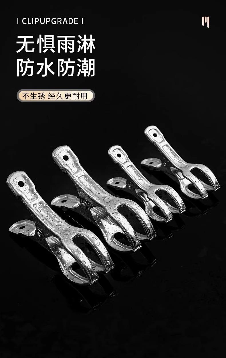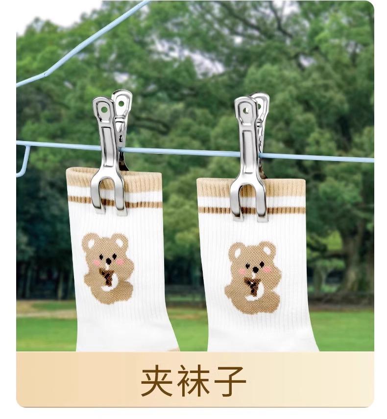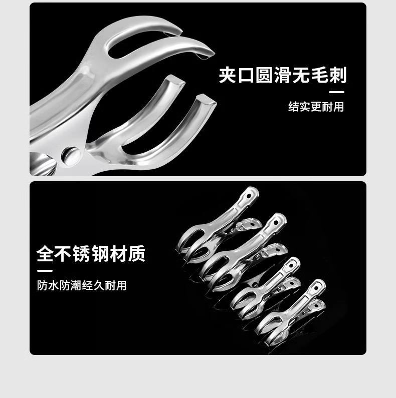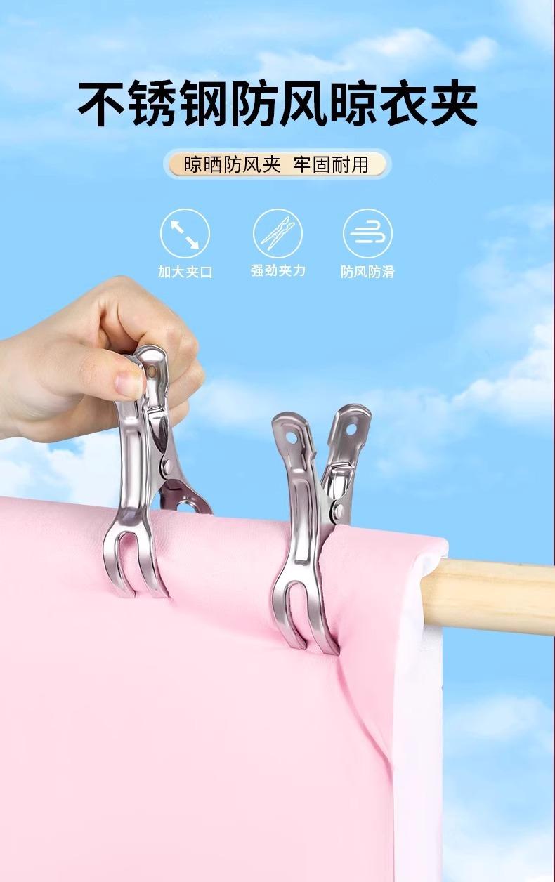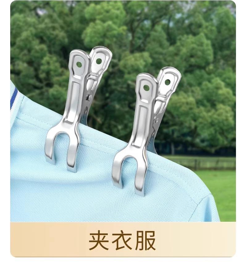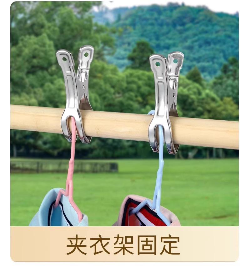 Tendedero de acero inoxidable con pinza grande, resistente al viento, para calcetines, ropa de casa, extragrande