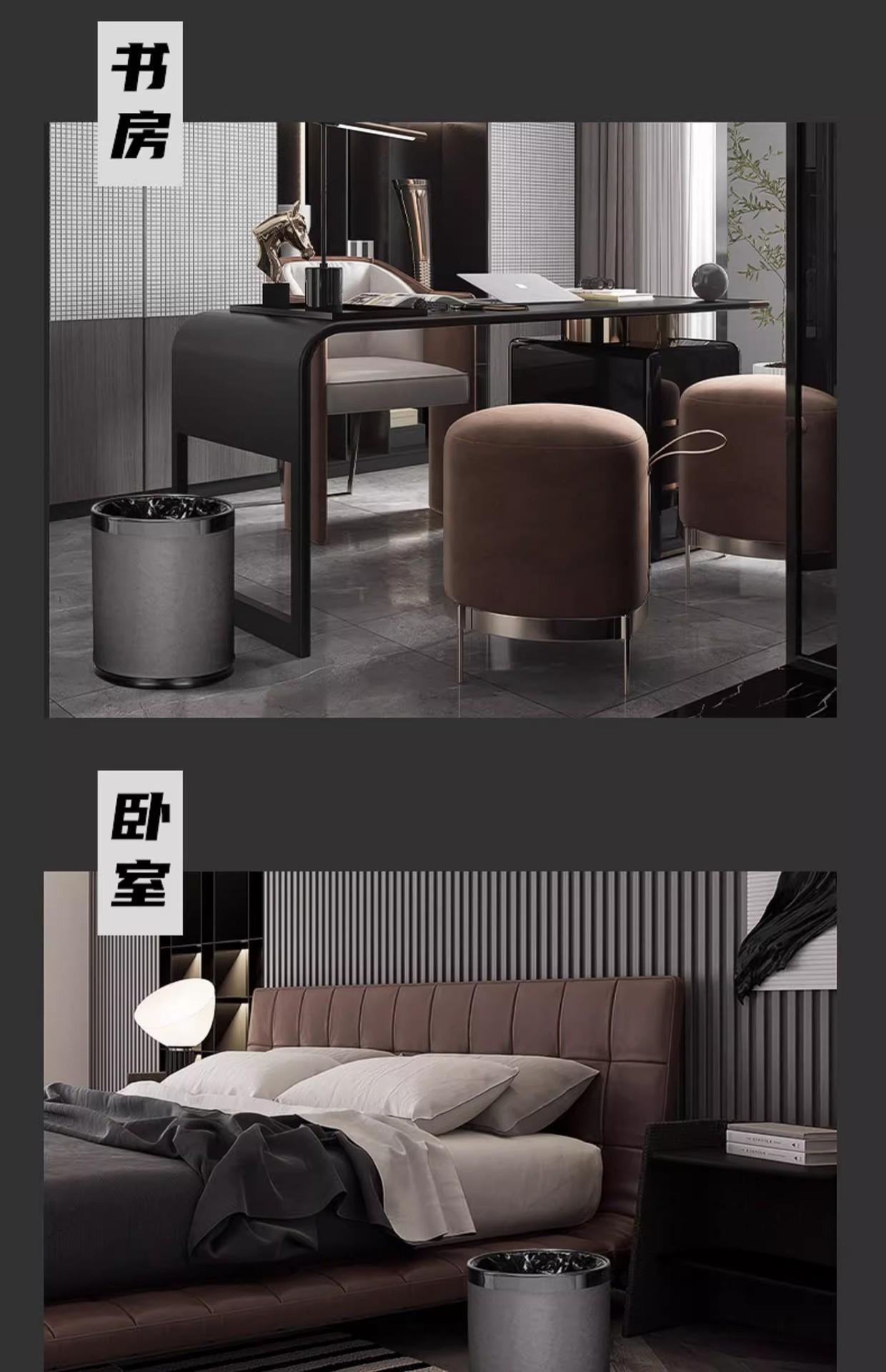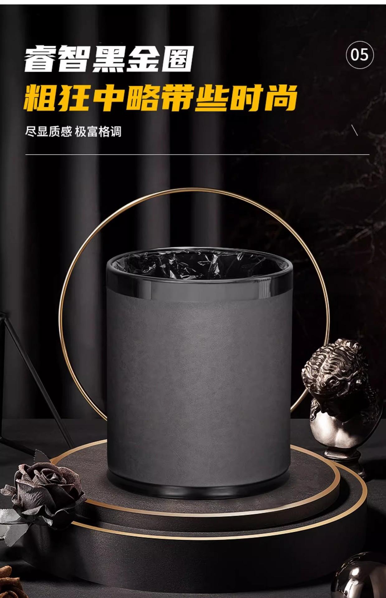 Double-layer iron trash can with pressure ring [black gold]