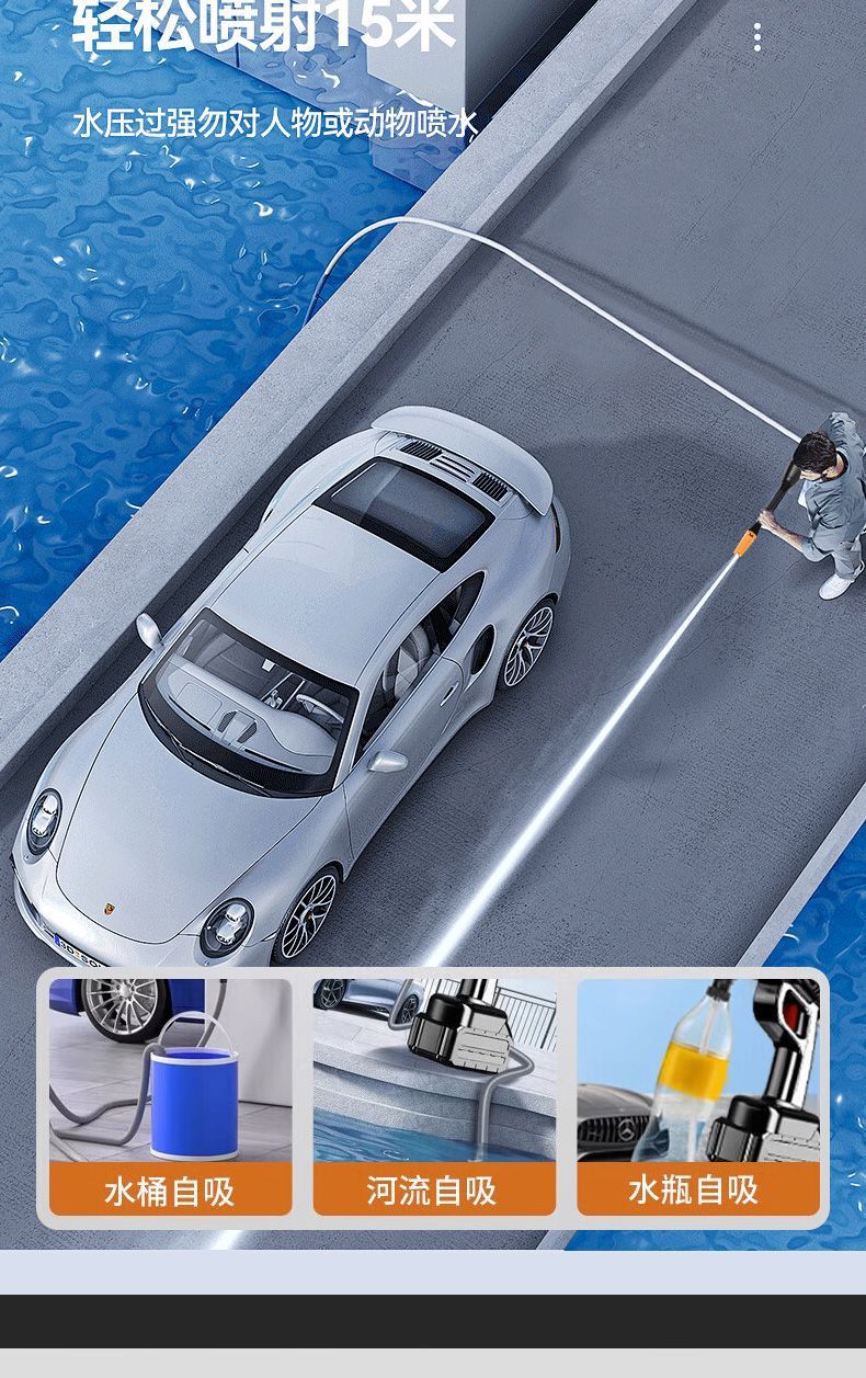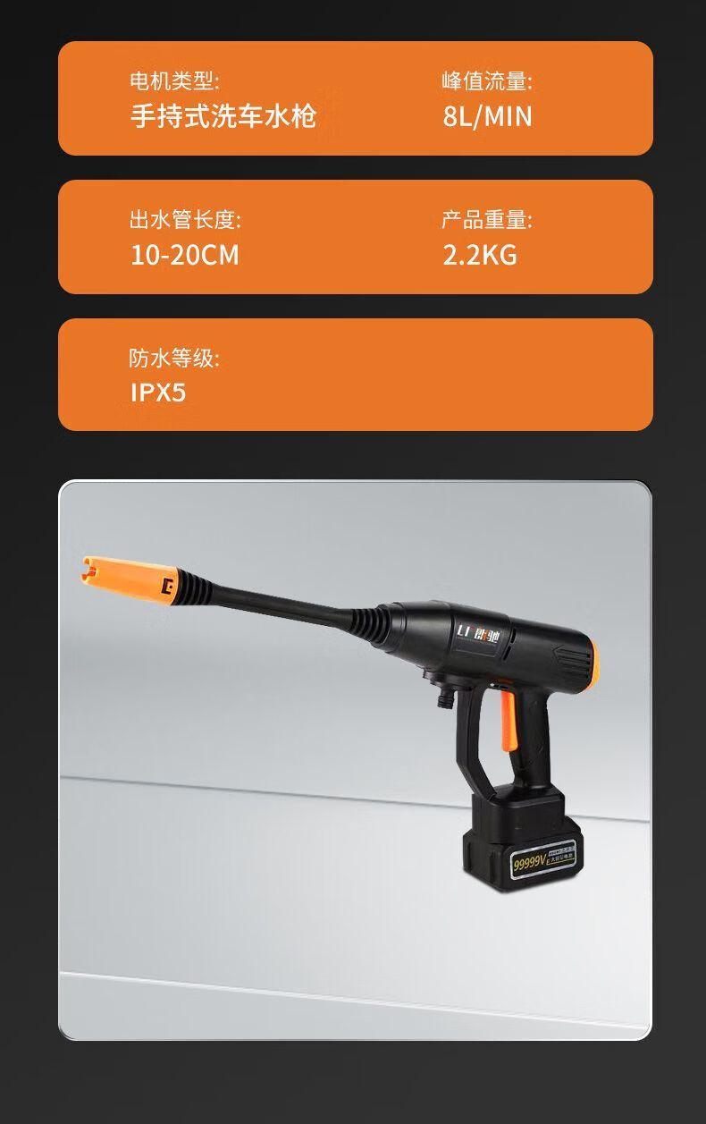 Pistola de agua para lavado de autos, lavadora de autos eléctrica doméstica, pistola de lavado de autos con carga, riego, pistola de agua de alta presión inalámbrica de litio, lavado de autos al por mayor