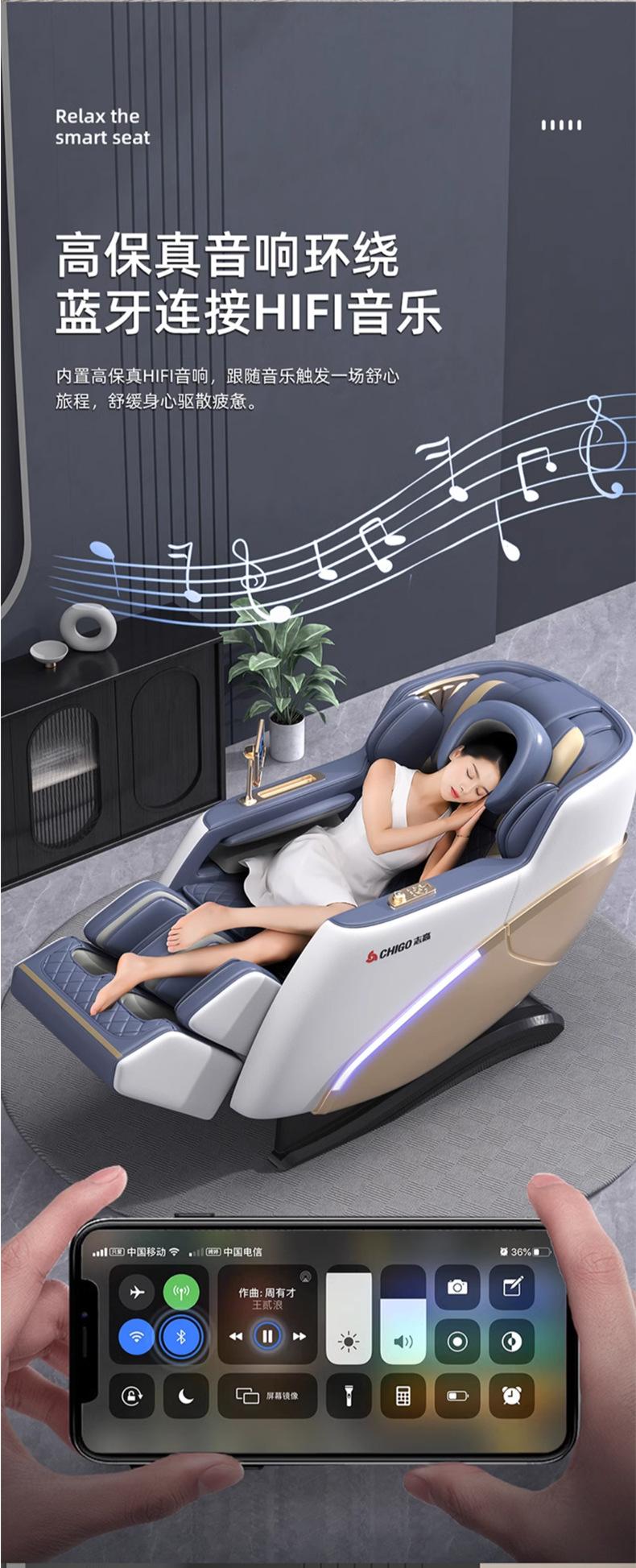 Sillón de masaje inteligente Chigo para el hogar, de cuerpo completo, con IA, automático, de lujo, cápsula espacial, sofá de masaje eléctrico con riel SL