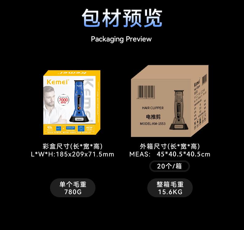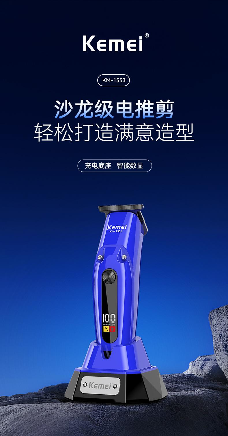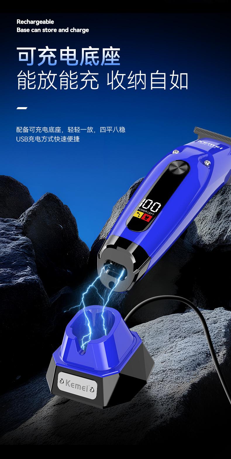 Kemei Cortadora Eléctrica Profesional Pantalla Digital Cortadora de Cabello Especial para Salón de Belleza Cortadora Eléctrica de Alta Velocidad con Base de Carga