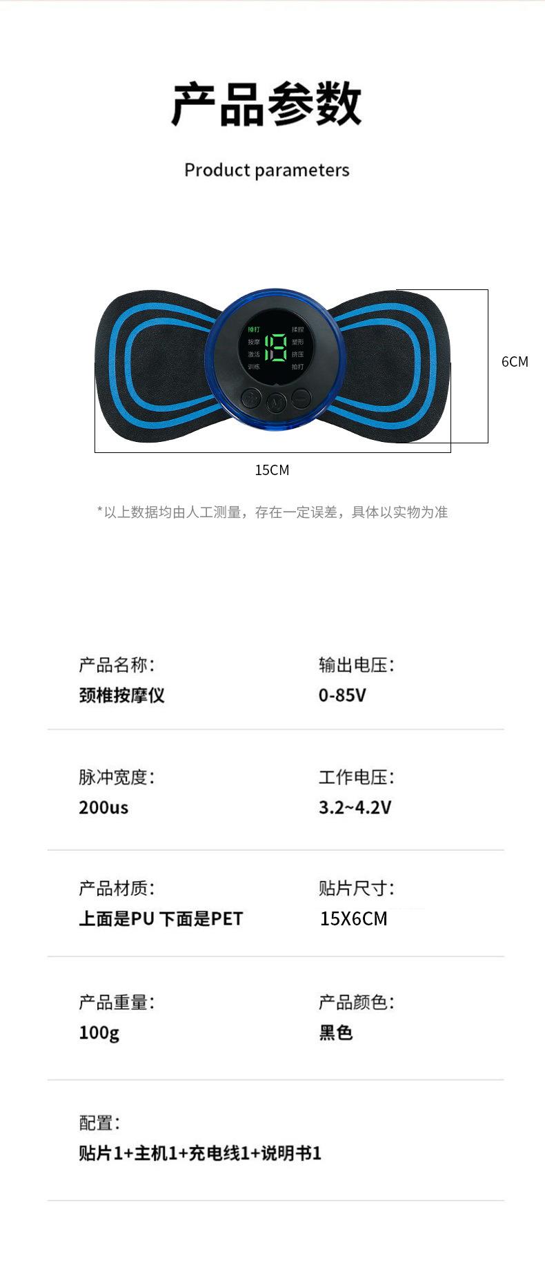 Parche de masaje de pulso cervical ems, mini masajeador de electroterapia portátil para hombros y cuello, masajeador de cuello eléctrico inteligente