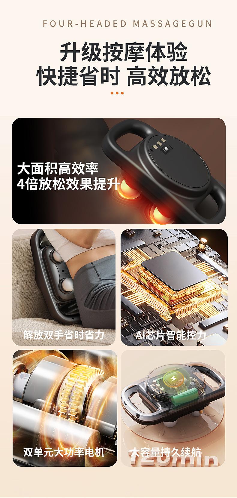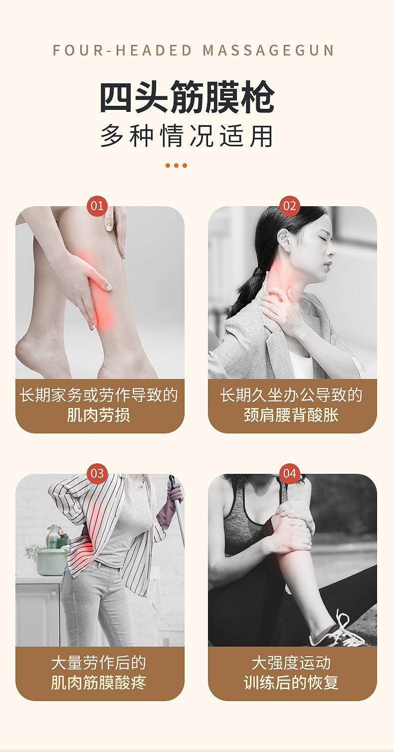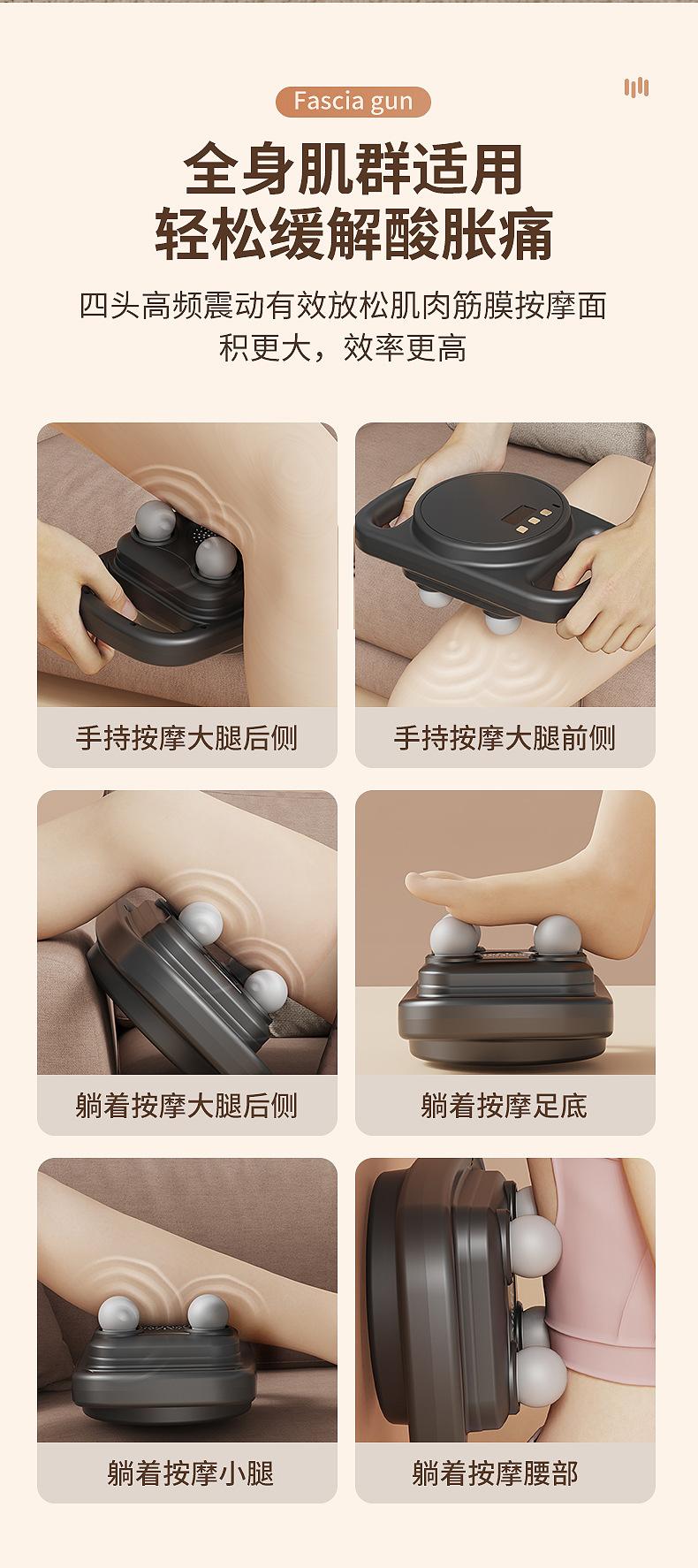 Pistola de Fascia de Cuatro Cabezales Instrumento de Masaje para Relajación Muscular Grado Profesional Multifunción Vibración Inalámbrico Cuerpo Completo Instrumento de Alta Frecuencia