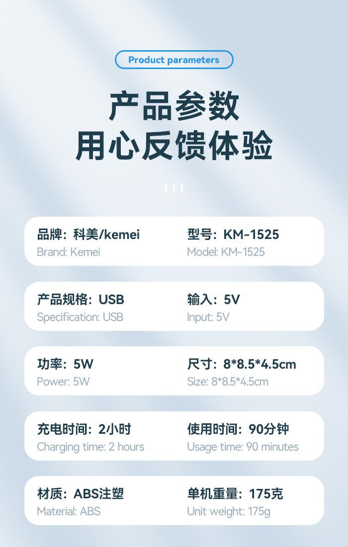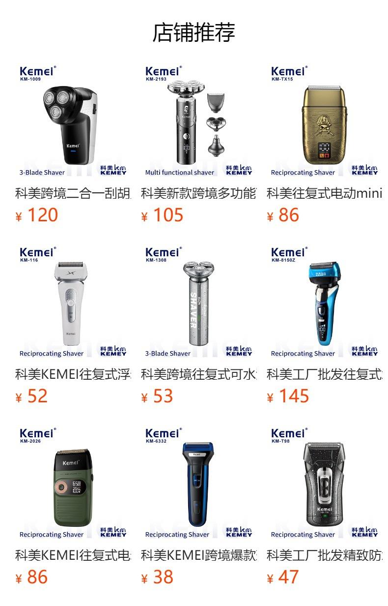 La empresa produce la serie Kemei.、、、、Afeitadora depilatoriaAparatos de cuidado personal, comoISO9001Sistema de gestión de calidad, calidad garantizada. Incorporamos continuamente equipos de vanguardia para desarrollar nuevos productos ecológicos con estilos innovadores y precios razonables.