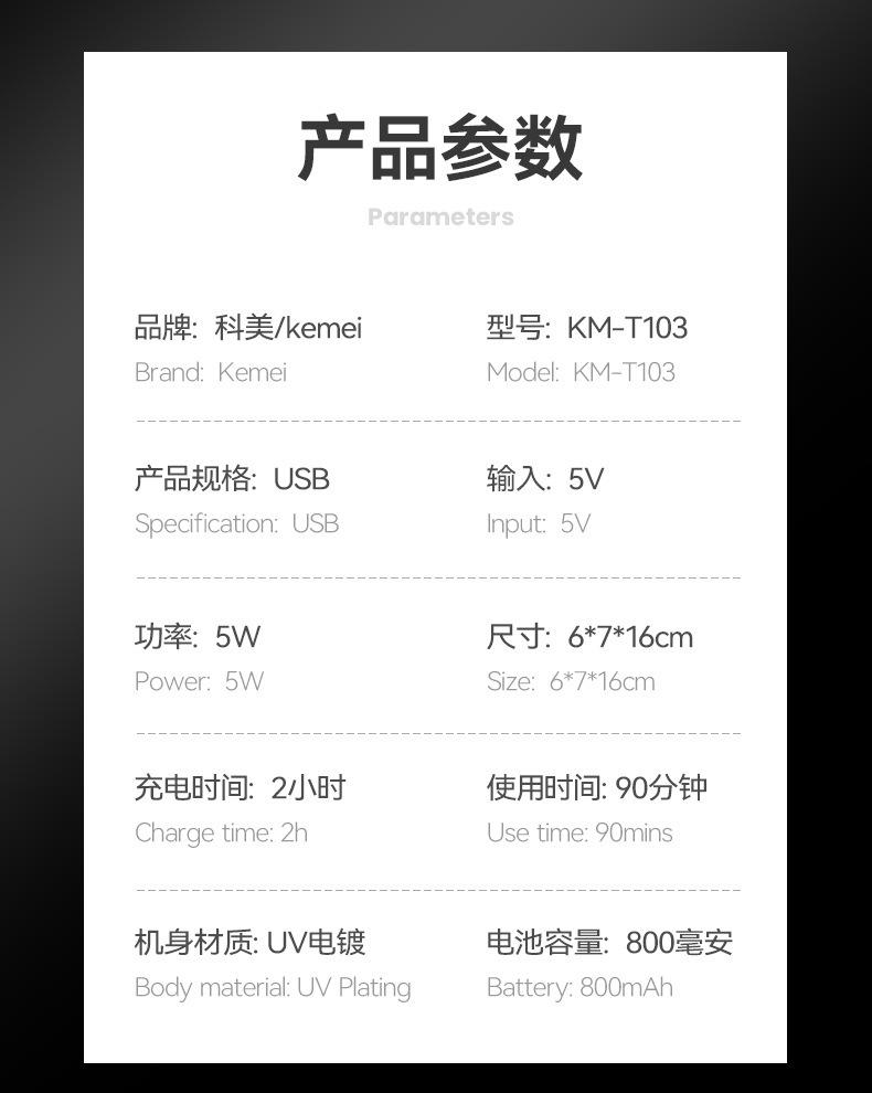 La empresa produce la serie Kemei.、、、、Aparatos de cuidado personal, comoISO9001Sistema de gestión de calidad, calidad garantizada. Incorporamos continuamente equipos de vanguardia para desarrollar nuevos productos ecológicos con estilos innovadores y precios razonables.