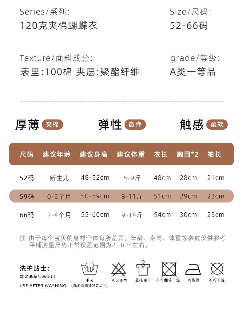 Ropa de algodón para bebé recién nacido Primavera y otoño Mono acolchado de algodón para recién nacido Otoño e invierno Ropa cálida de mariposa para bebé recién nacido