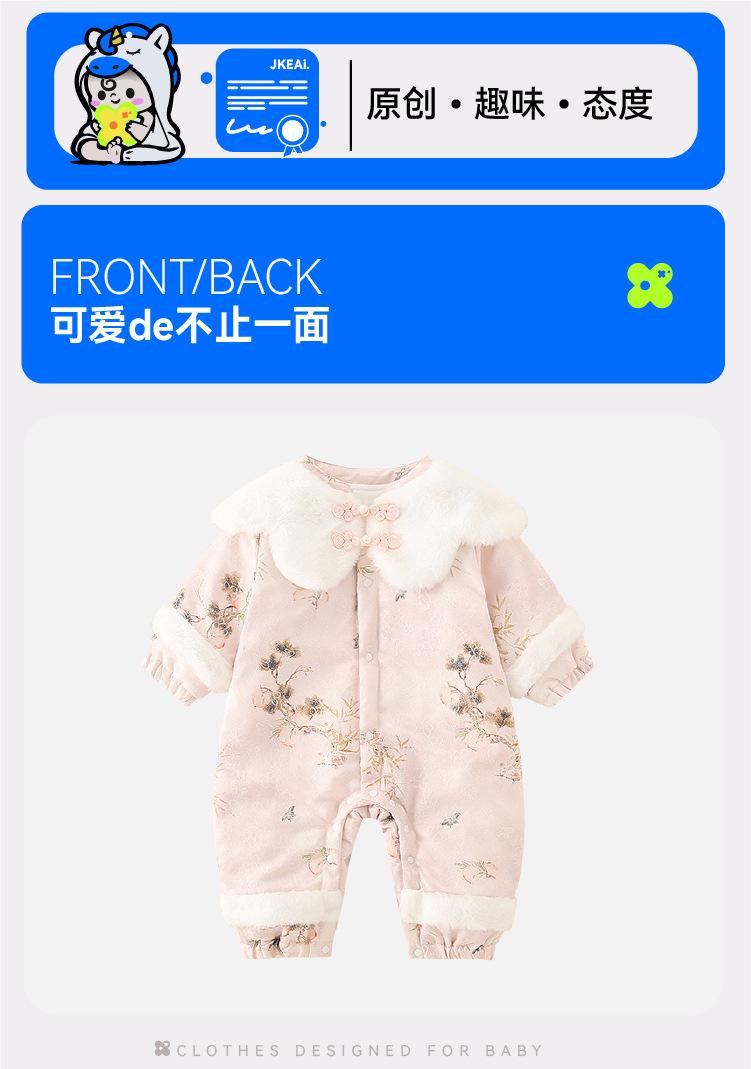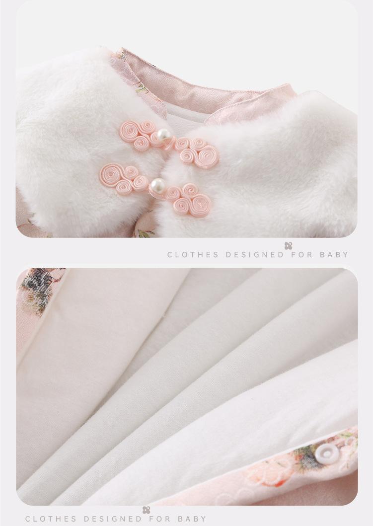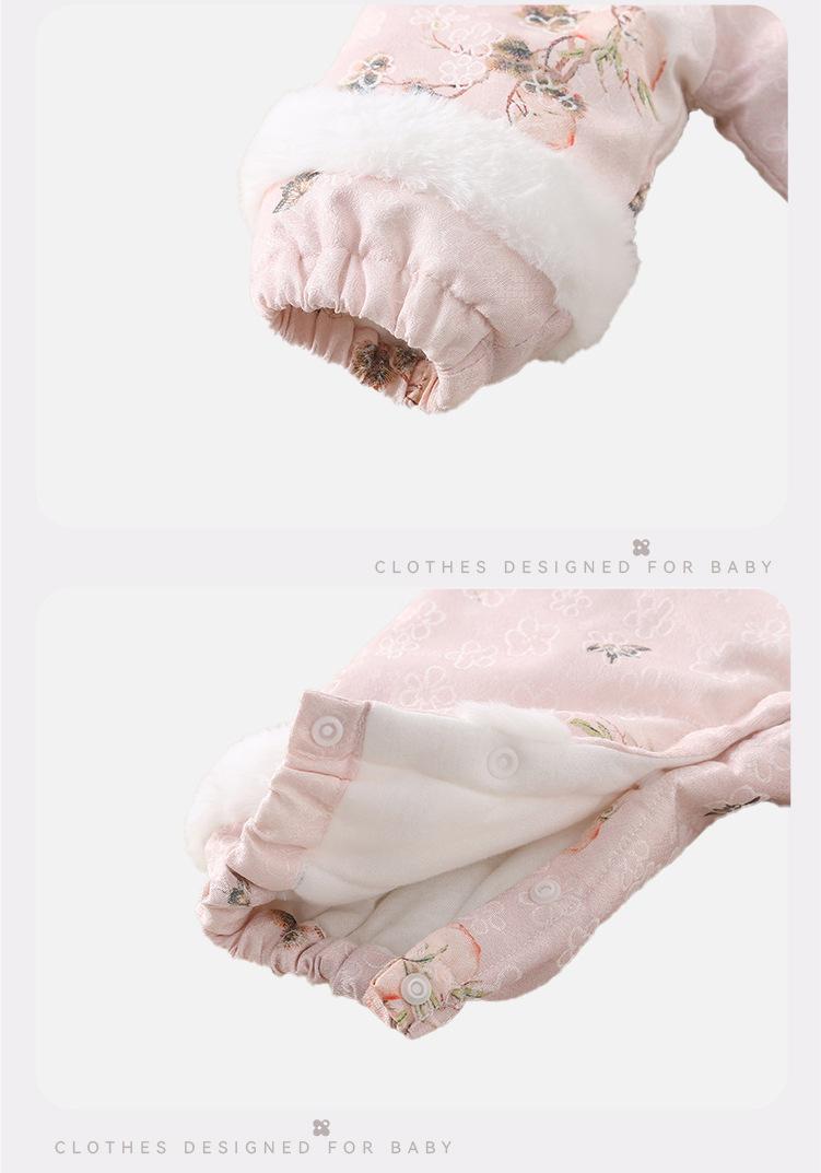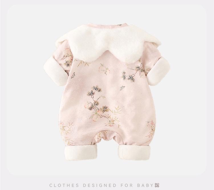 Ropa de Otoño e Invierno para Bebé Mameluco Delgado de Algodón Bebé Femenino Estilo Chino Recién Nacido Luna Llena Banquete de 100 Días Un Año Harem Invierno