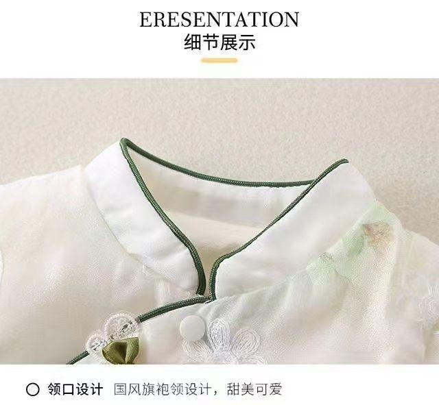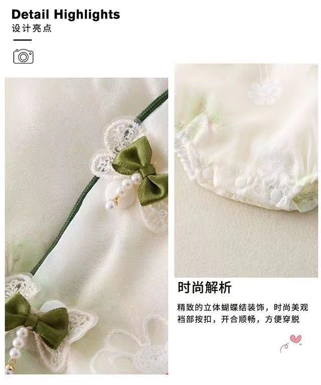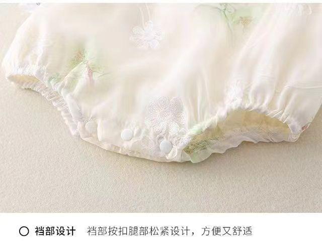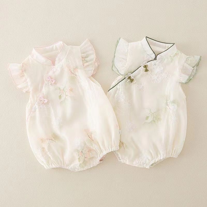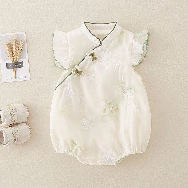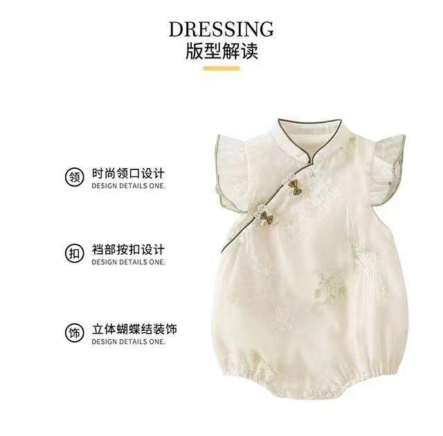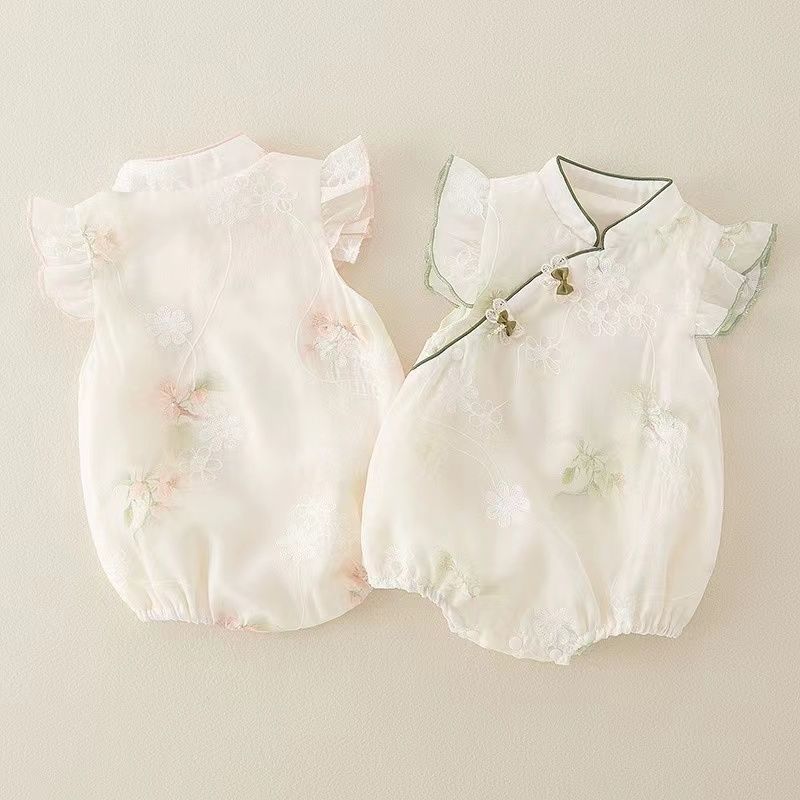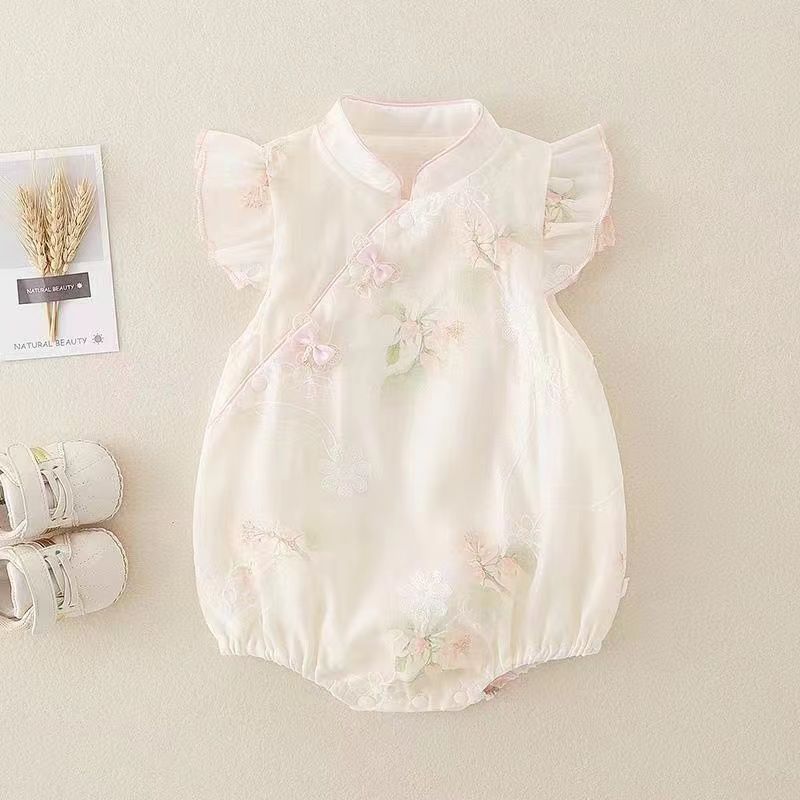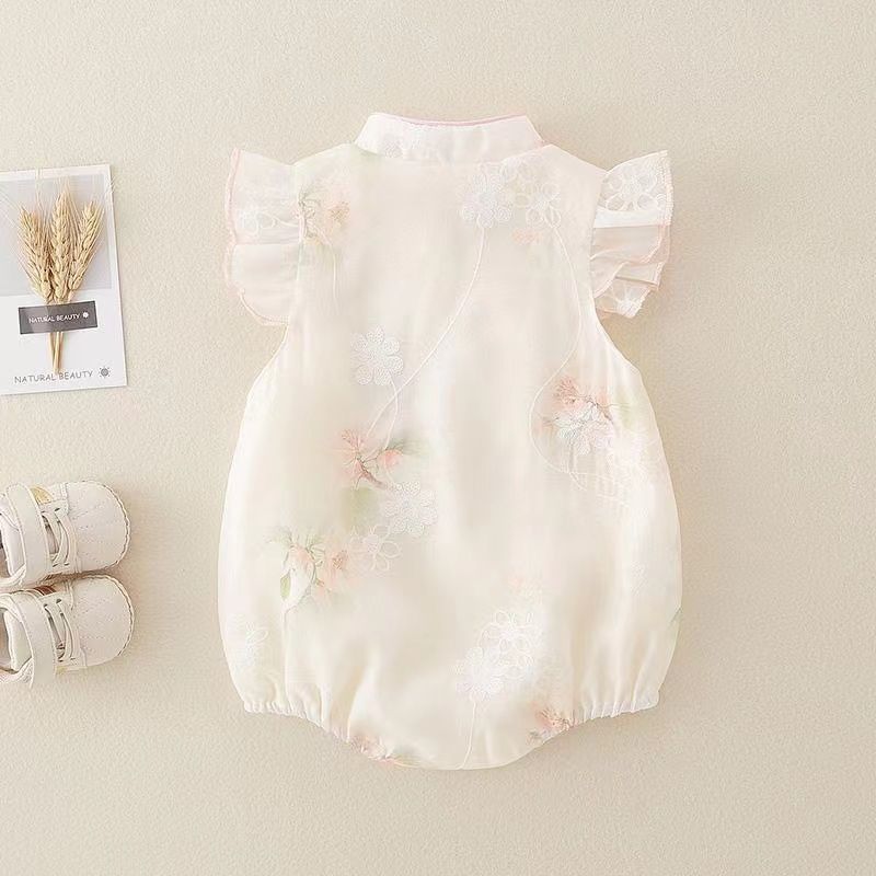 Ropa de Verano para Bebé Mono Delgado de Manga Volante para Bebé Niña Coreano Lindo Súper Lindo Cheongsam Bolso Triangular Ropa de Pedos