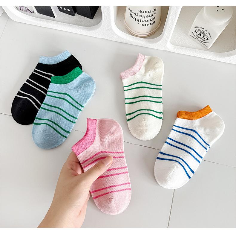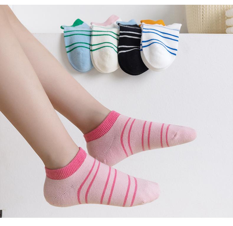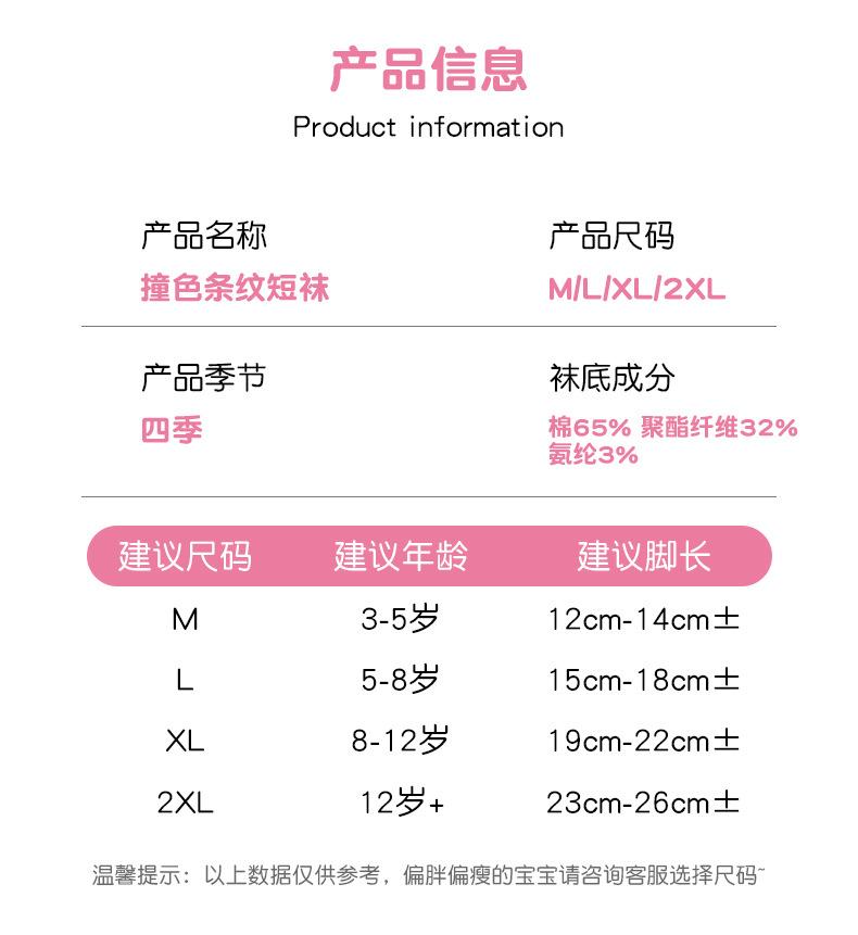Otoño e invierno nuevos calcetines para niños moda contraste rayas calcetines cortos calcetines de algodón para niños grandes calcetines de tubo para niñas al por mayor