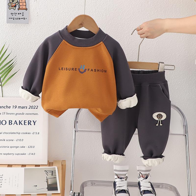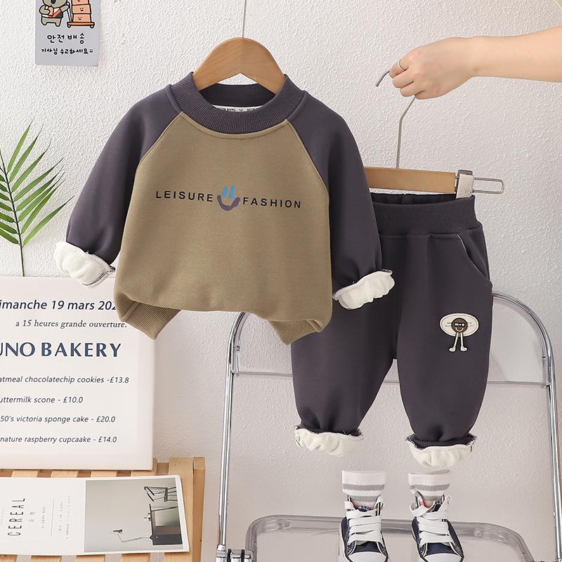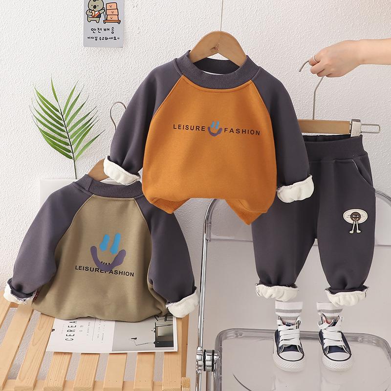 Ropa infantil Doby 2024, chalecos de cuello redondo con mangas forradas de vellón, ropa infantil de invierno Joker de finales de otoño, dos piezas, generación al por mayor