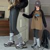 Pantalones Térmicos de Cintura Alta Negro Dorado para Niños de Otoño e Invierno, Calzoncillos Largos de Lana de Seda para Niñas, Pantalones de Lana para Niños Mayores, Doble Capa