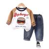 Conjunto de ropa de primavera para niños 2024, nuevo conjunto de sudadera de manga larga con estampado de dibujos animados de estilo occidental para primavera y otoño, conjunto de dos piezas.