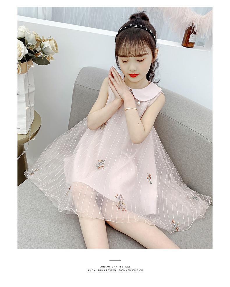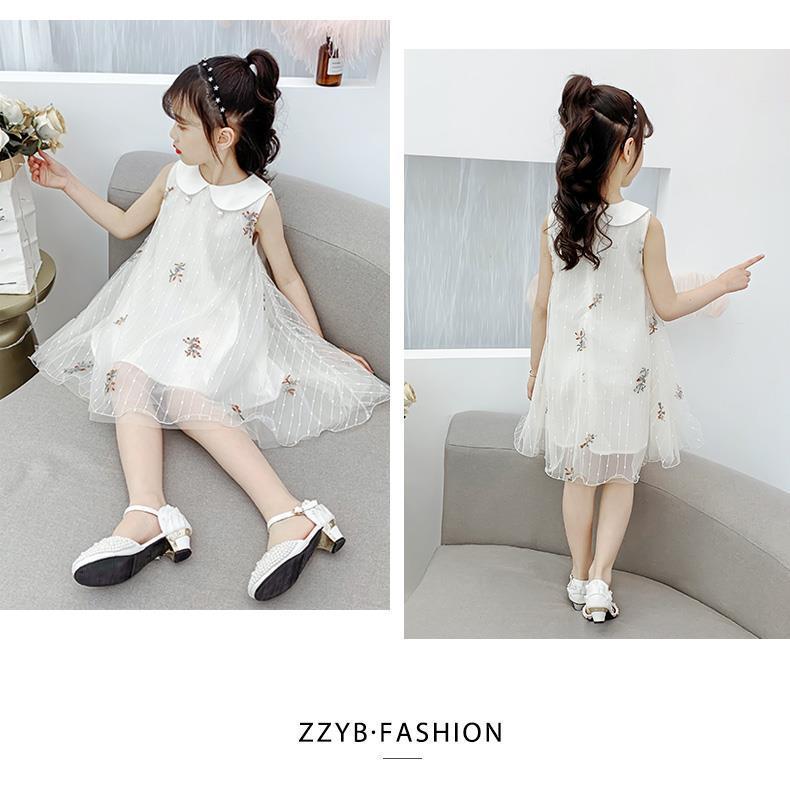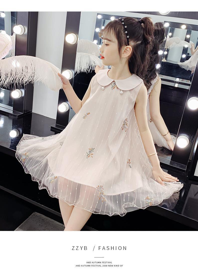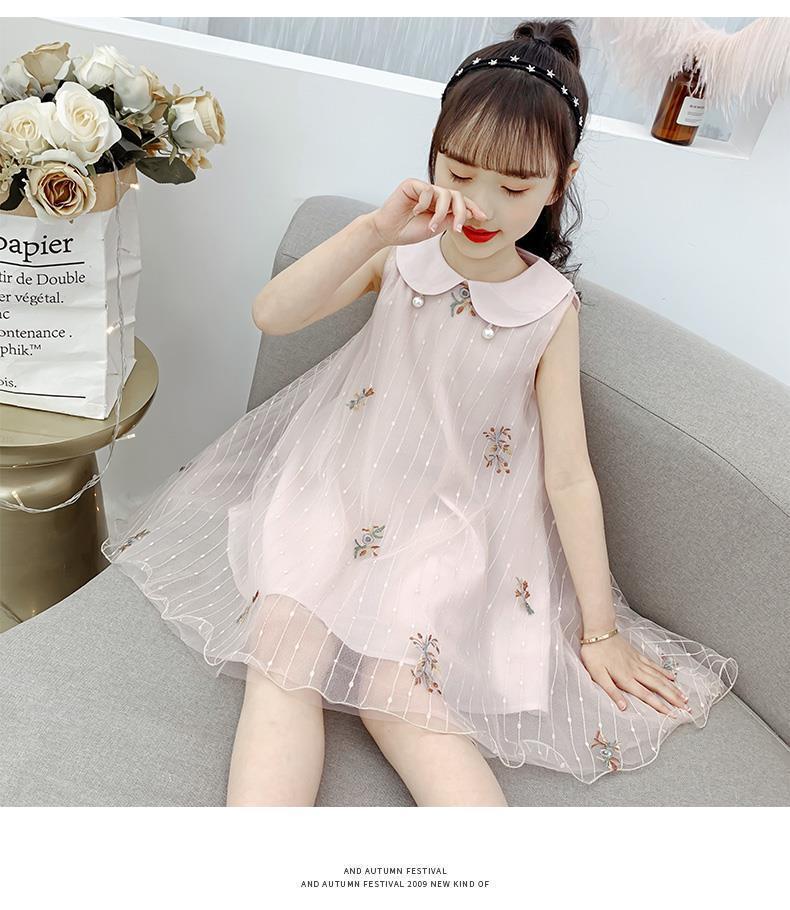 Vestido para niñas 2024, nuevo estilo, falda sin mangas para niños, falda de malla de verano, vestido de princesa para niñas