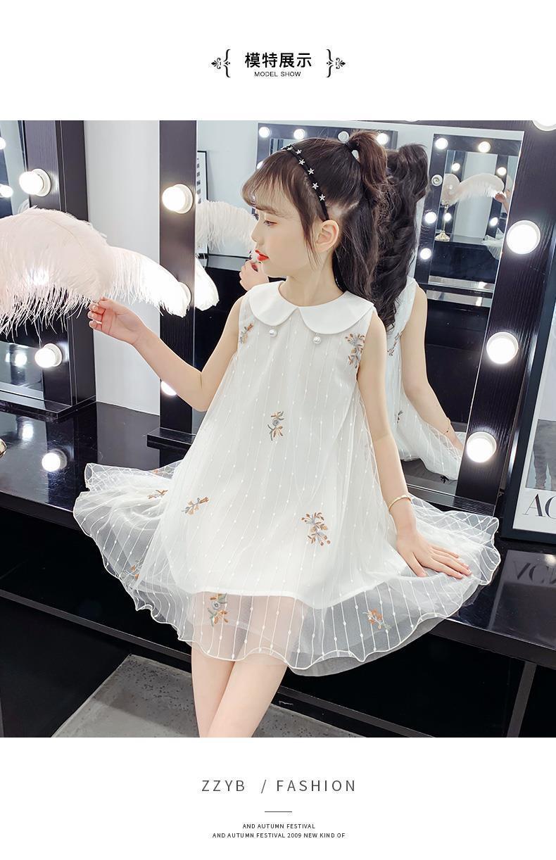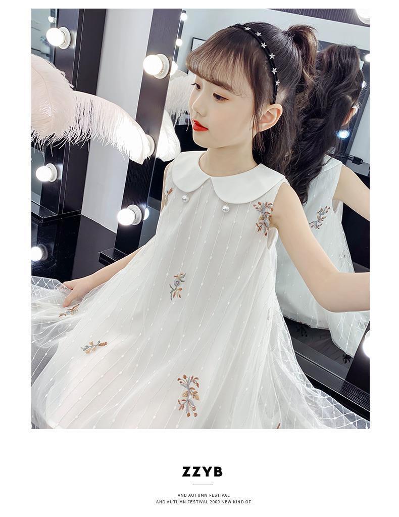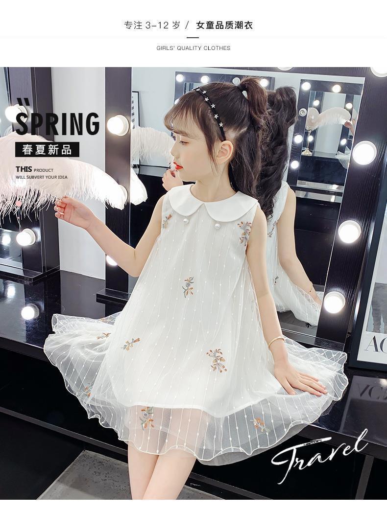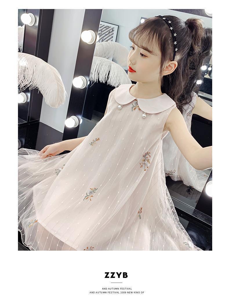 Vestido para niñas 2024, nuevo estilo, falda sin mangas para niños, falda de malla de verano, vestido de princesa para niñas