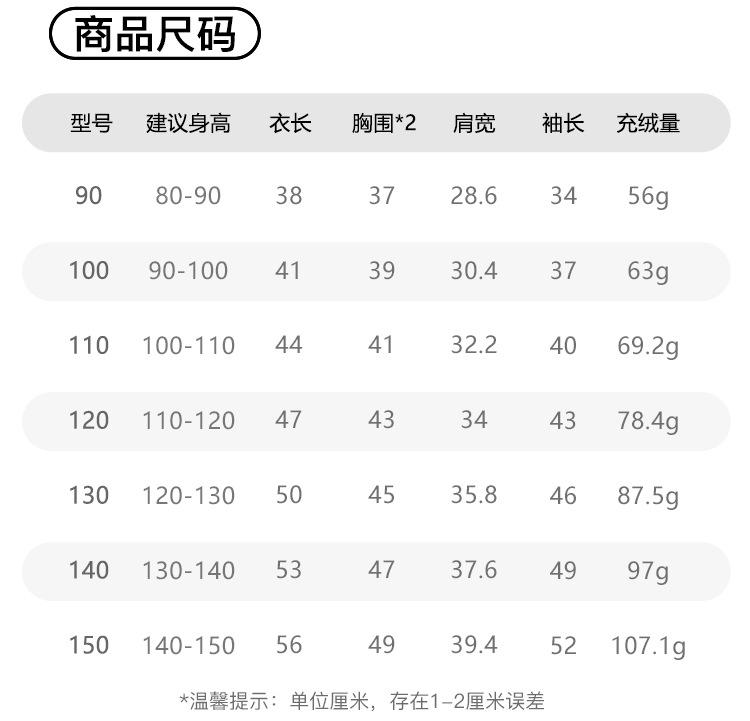 90 down filling capacity 56g, 100 down filling capacity 63g, 110 down filling capacity 69.2g, 120 down filling...