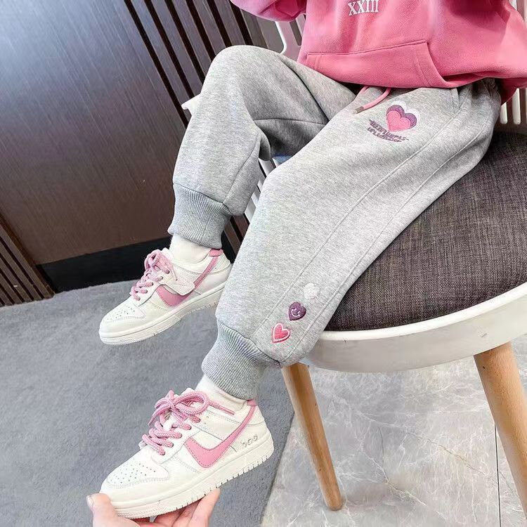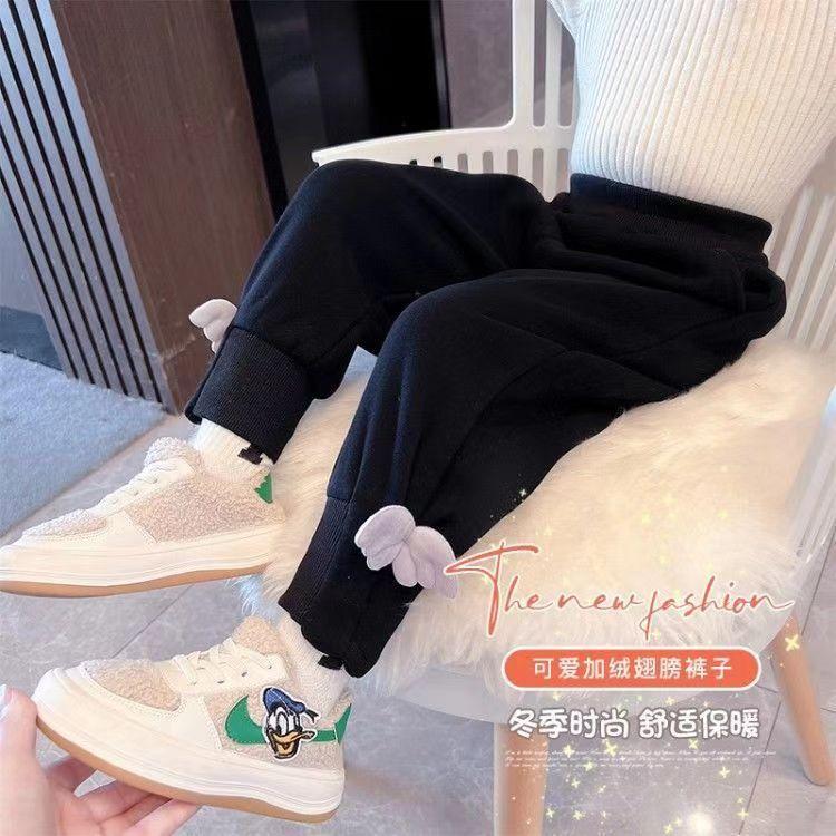 Pantalones gruesos con forro polar para niñas, ropa exterior de estilo occidental para niños, pantalones casuales de invierno para niños, ropa para niños, 2024