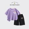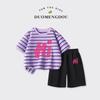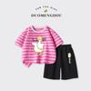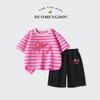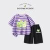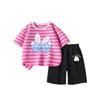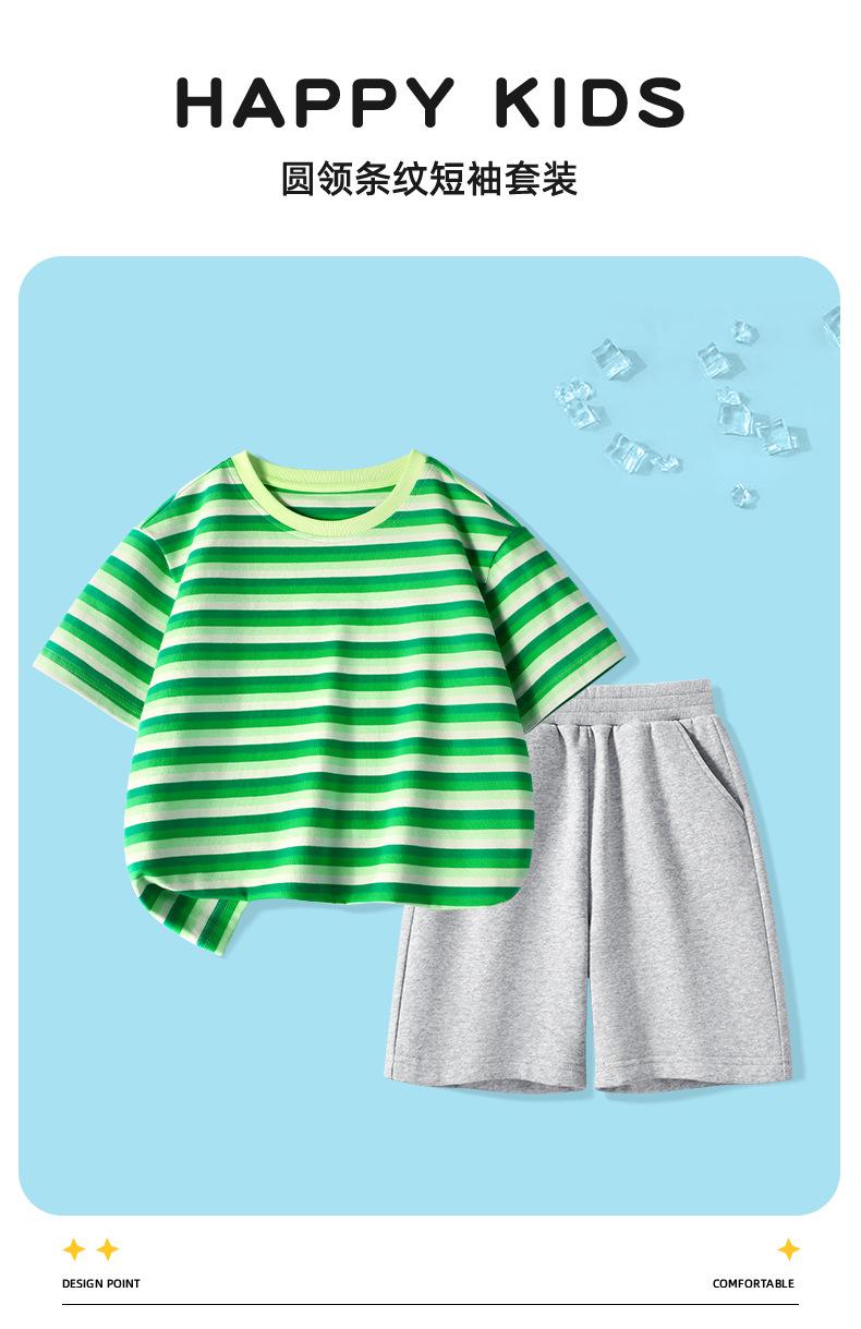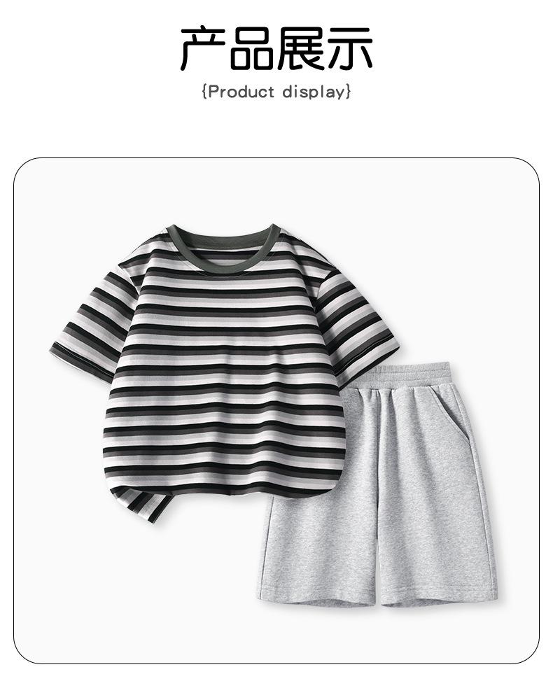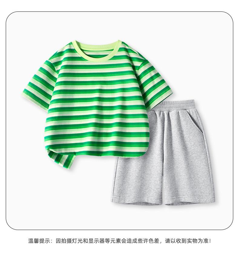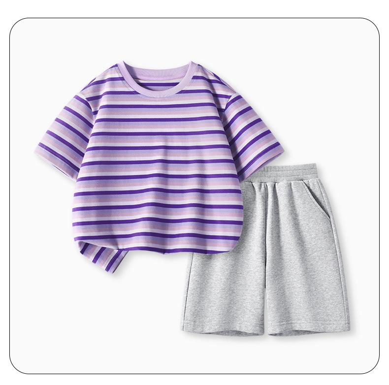 Traje de Verano para Niñas Estilo Infantil Tops a Rayas 2025 Nuevo Niñas Grandes Niñas Algodón Puro Shorts Tops de Cuello Redondo