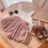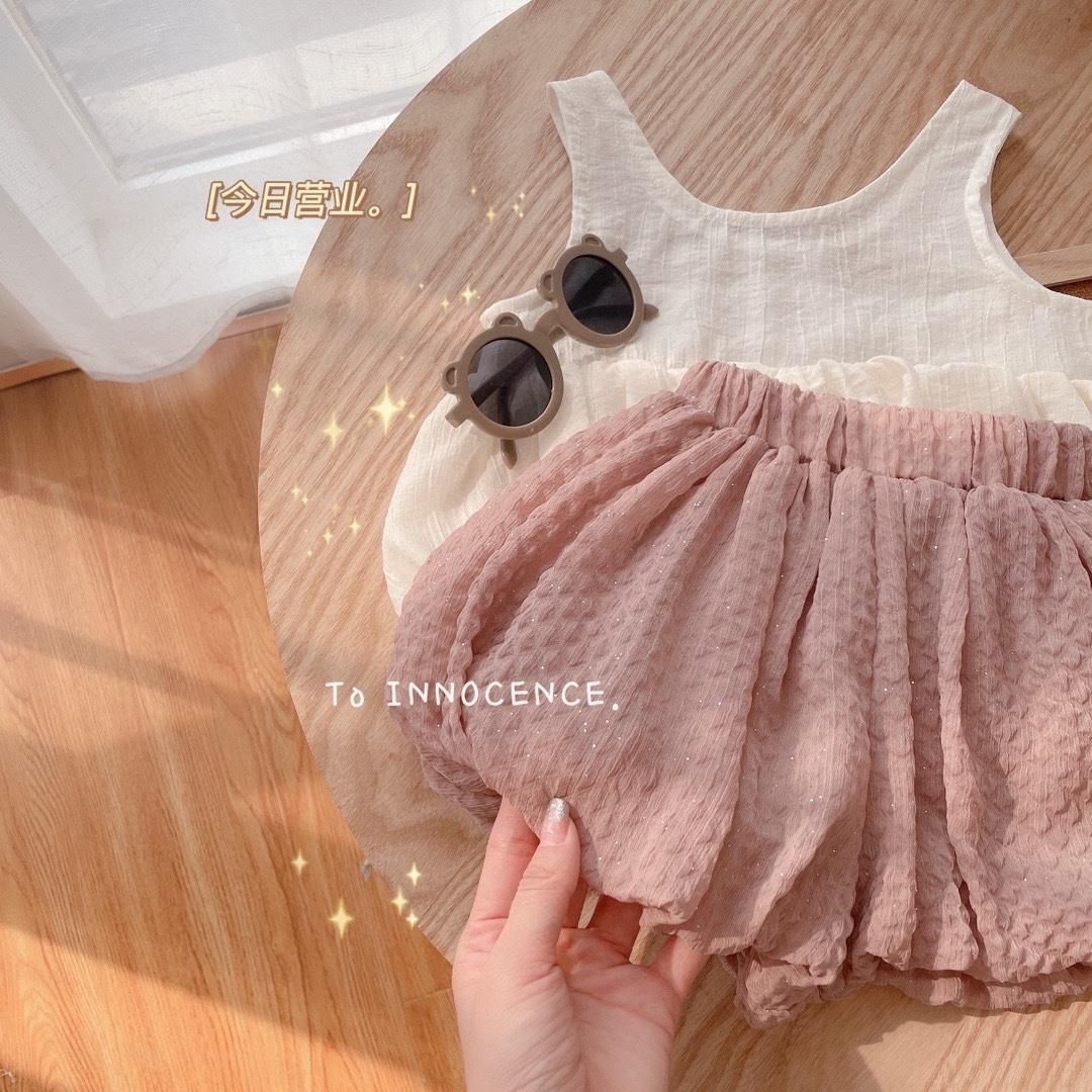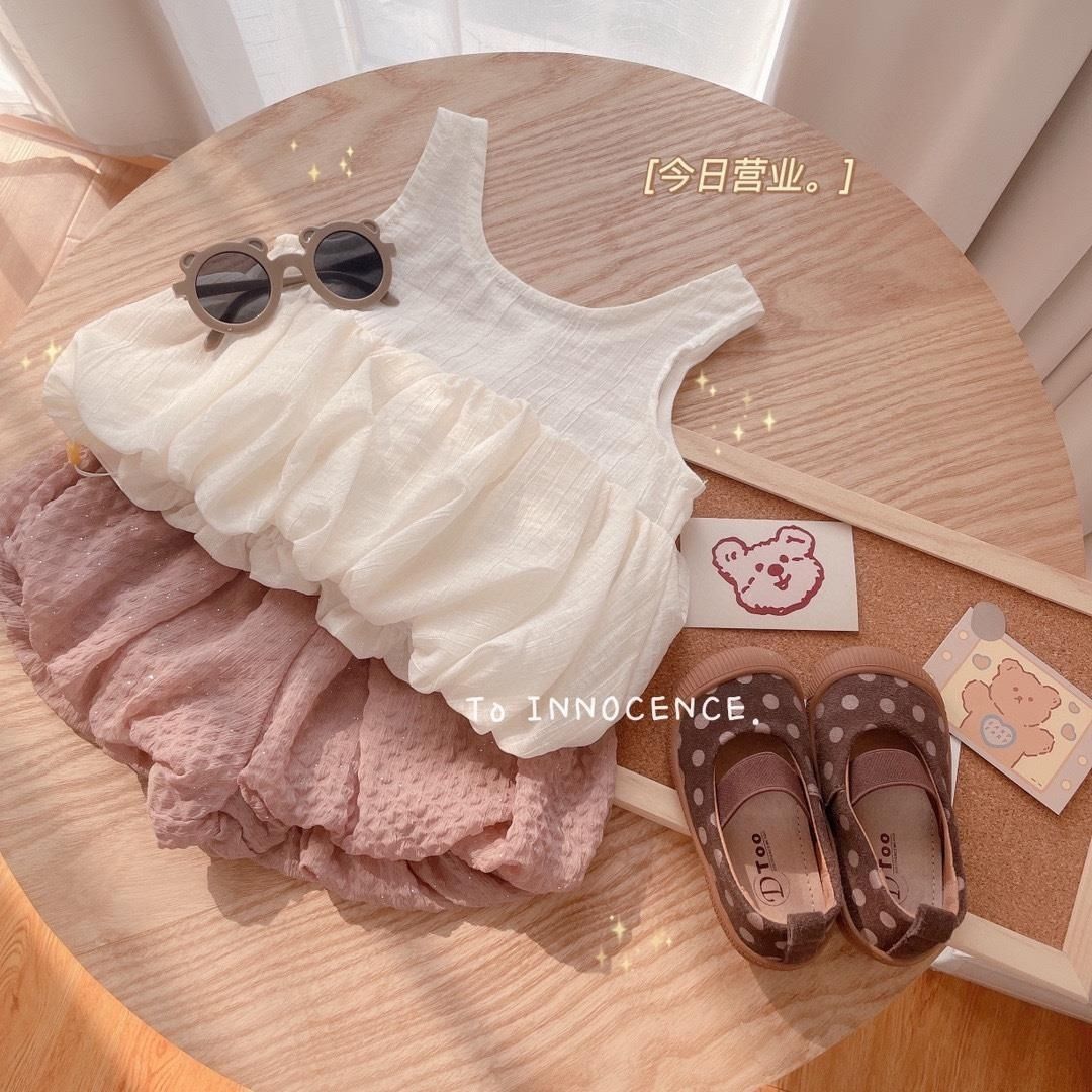 Traje de Verano para Niñas Bebé Elegante Personalidad Infantil Moderno Lindo Dulce Coreano Chaleco Camisa Linterna Shorts de Botón