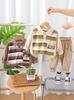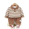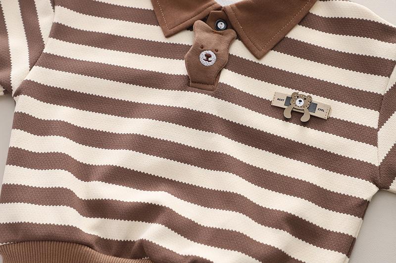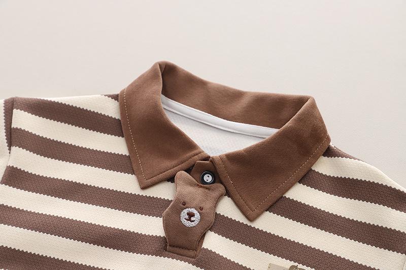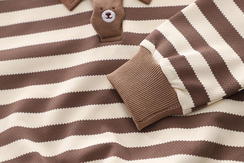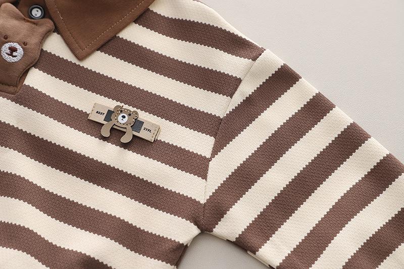 Brown striped bear three-dimensional long-sleeved 2-piece lapel shirt, Black striped bear three-dimensional lo...
