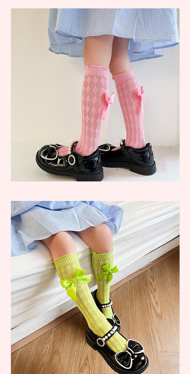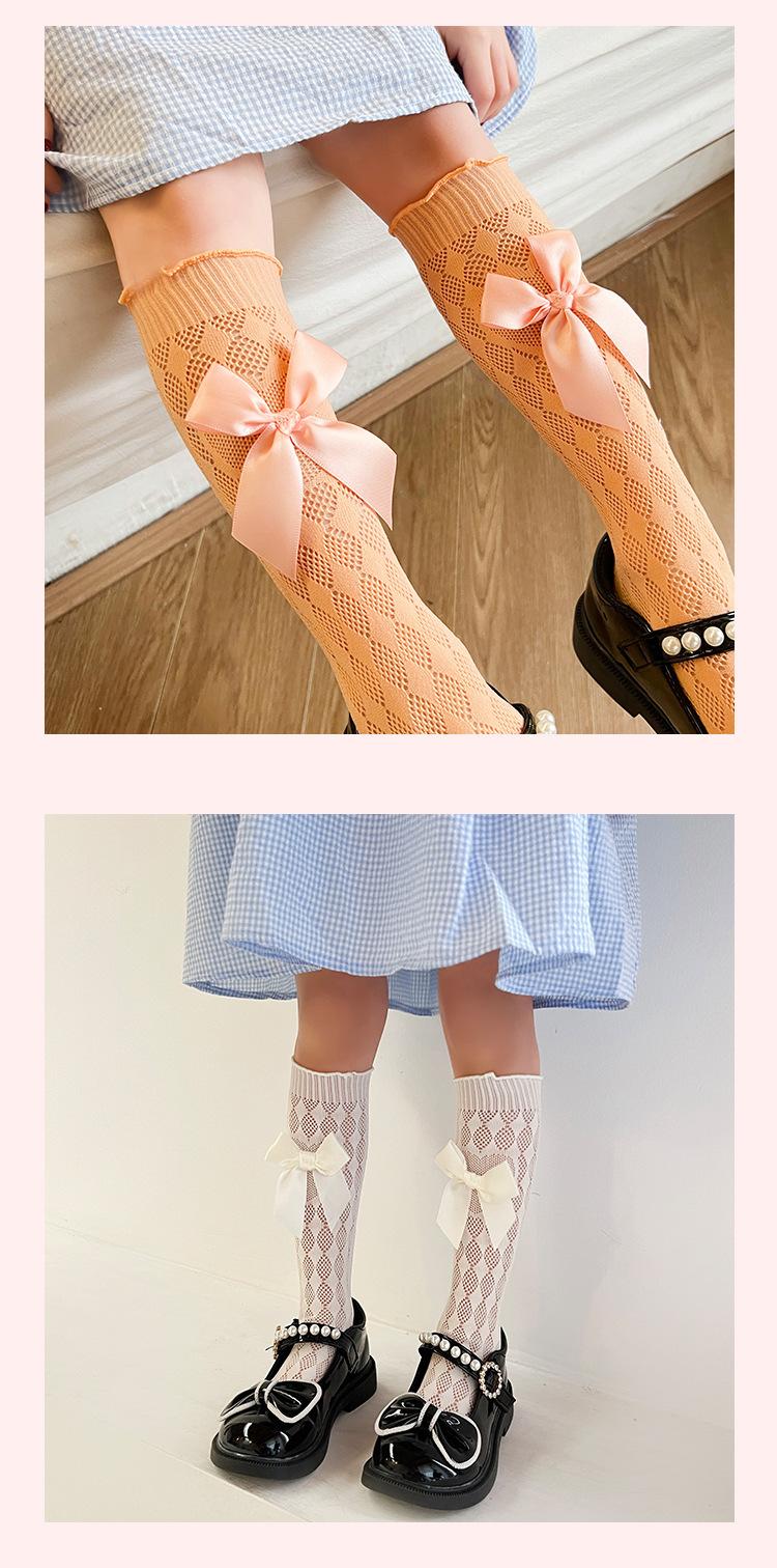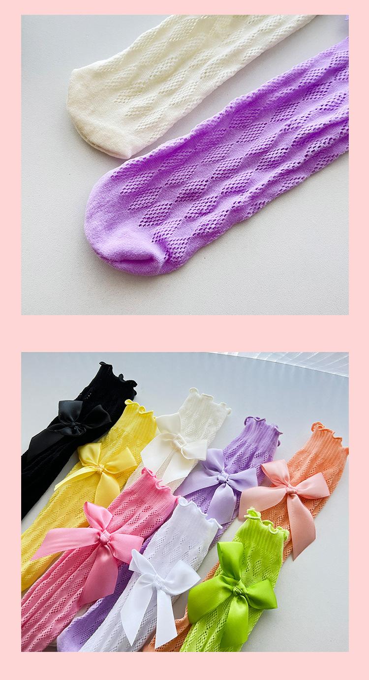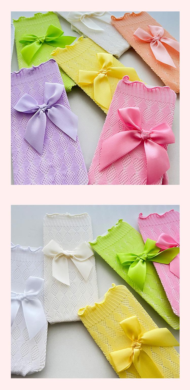 Calcetines nuevos para niños, primavera y verano, finos, con lazo, de longitud media, de princesa, de color caramelo, lote de fábrica