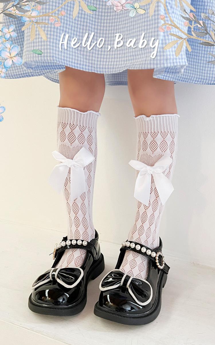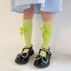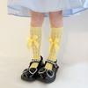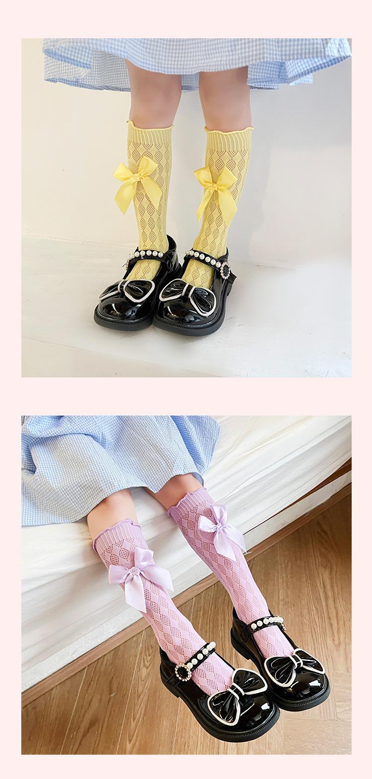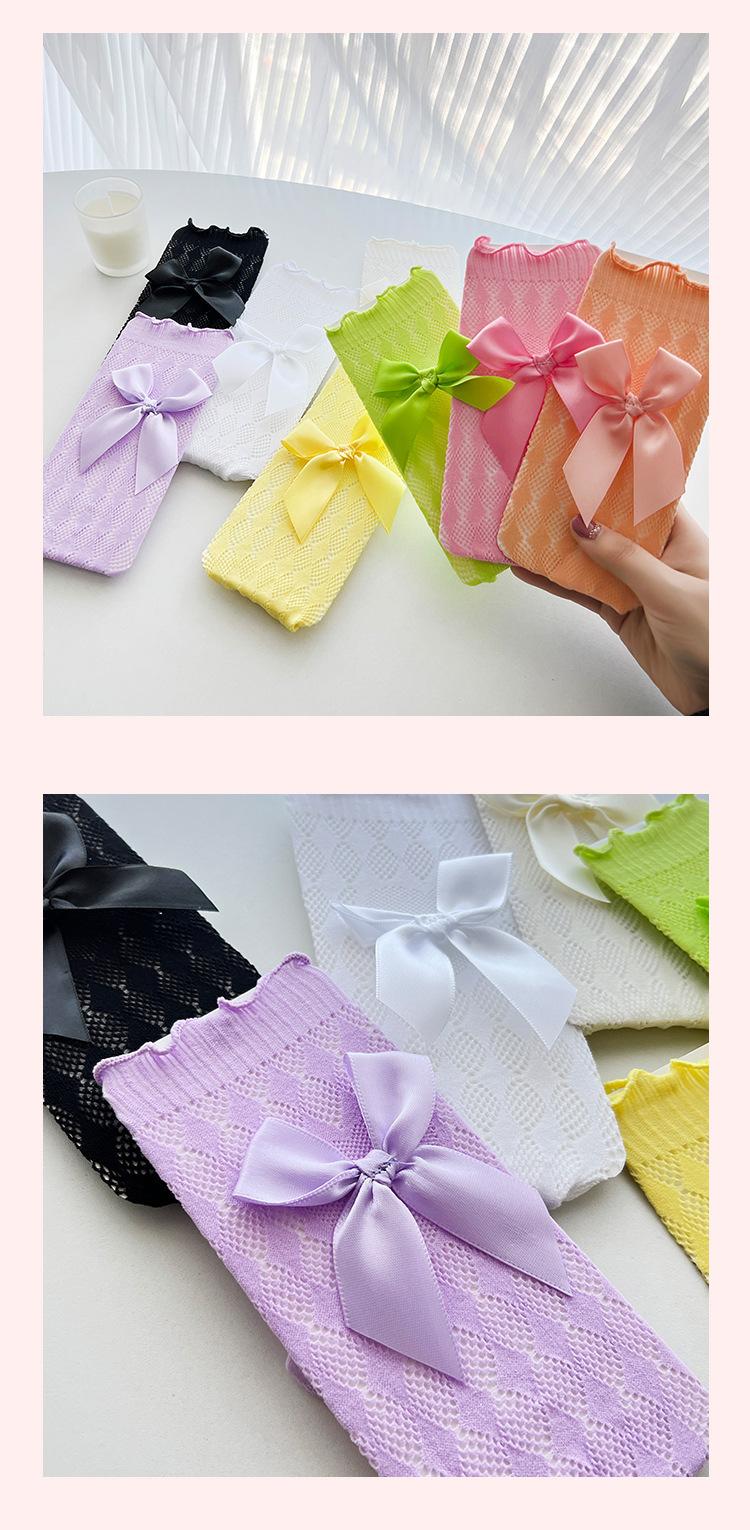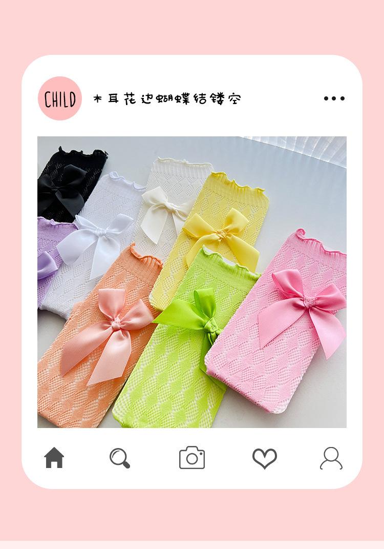 Calcetines nuevos para niños, primavera y verano, finos, con lazo, de longitud media, de princesa, de color caramelo, lote de fábrica