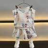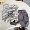 Traje de Manga Corta para Niño, Ropa de Verano con Estampado de Dibujos Animados con Tema de Cochecito de Bebé, Pantalones Antimosquitos para Niños, Conjunto de Dos Piezas