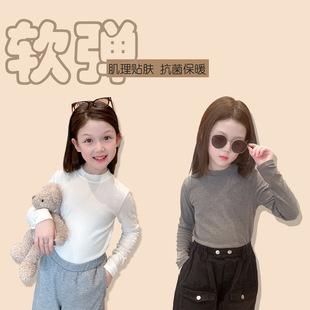 Y Otoño Nuevo Camiseta Básica de Color Sólido para Niños Adolescente Estilo Coreano Manga Larga Tejido Versátil Camiseta Niños Medianos y Grandes