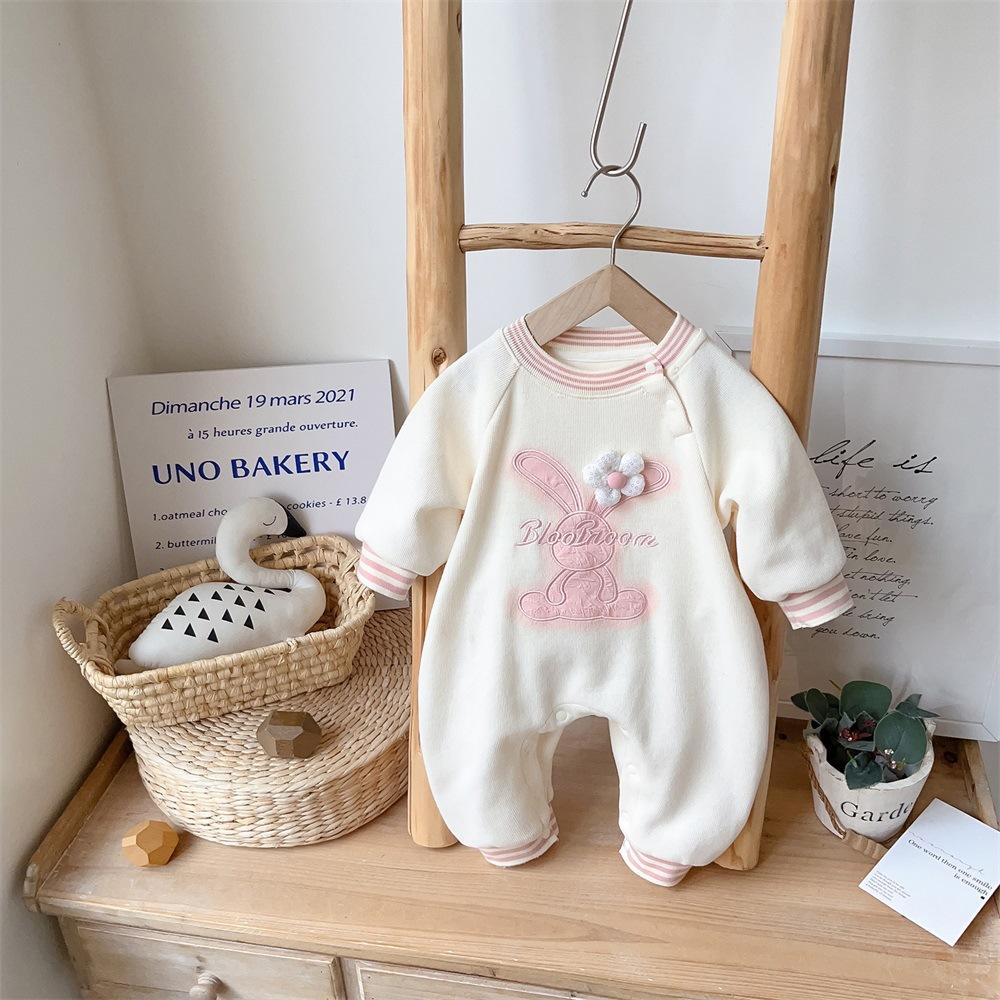 Compra Mameluco de conejito estilo coreano para bebé niña de 0 a 2 años, ha-coat cálido con forro polar para otoño e invierno, ropa de escalada de manga larga para bebé al por mayor en Joom.pro