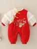 Ropa de invierno para bebé, ropa de bebé recién nacido, ropa de bebé de un solo cuerpo, forrada con vellón, gruesa, roja, para fiestas de un año, ropa para salir de Año Nuevo.