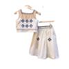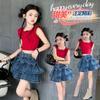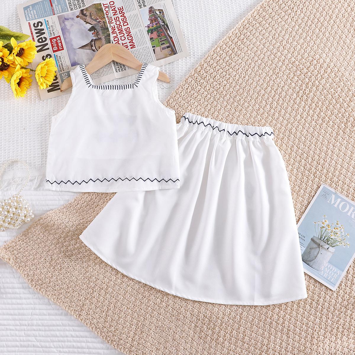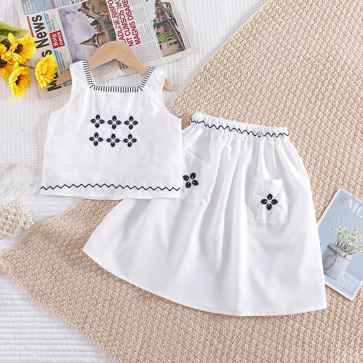 Ropa infantil primavera y verano 2024, nuevo traje elegante Mori para niñas, chaleco sin mangas bordado para niñas, falda superior