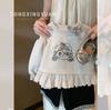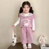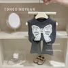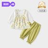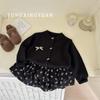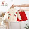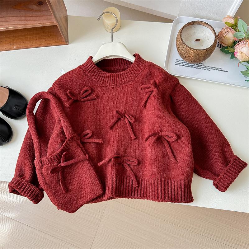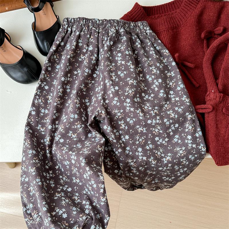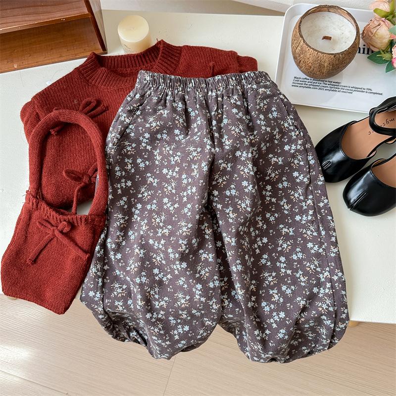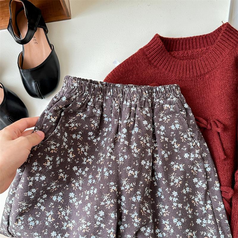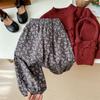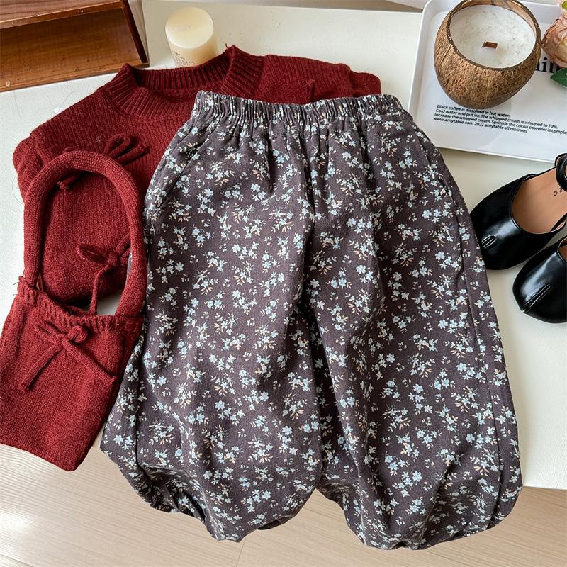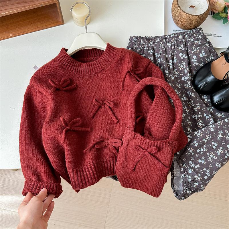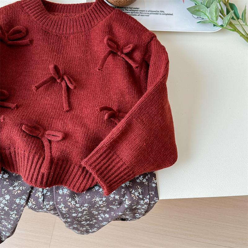 Tong Xingyuan Otoño Nuevo Estilo Coreano Lindo Suéter con Lazo Rojo Abrigo Niñas Camisa de Punto Pantalones Florales Conjunto