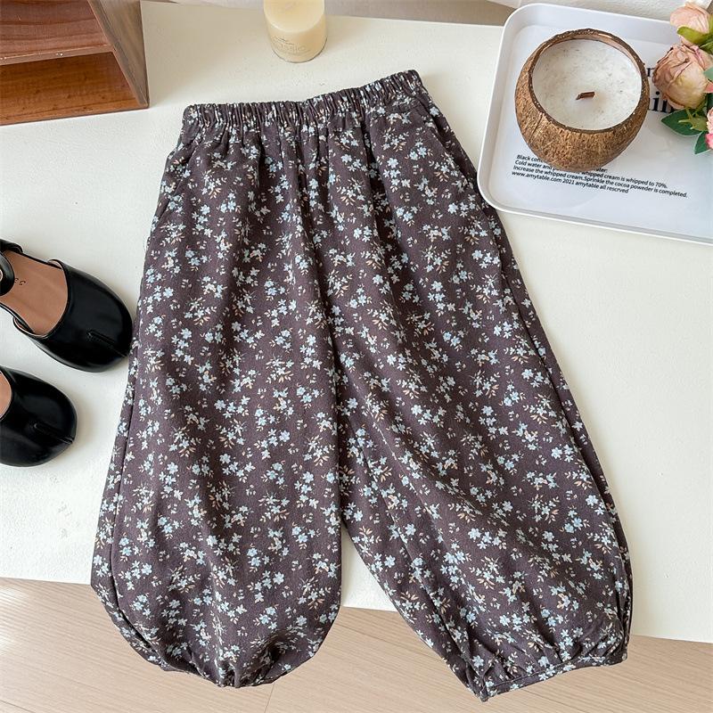 Two-piece set [free bag], Burgundy [free bag], Floral pants, 4605-beige