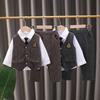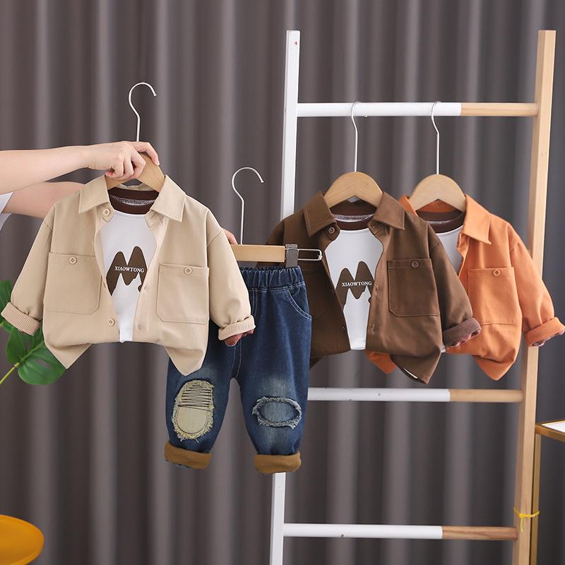 Traje de primavera y otoño para niños 2024 nuevo estilo extranjero bebé 1-3 años 5 ropa primavera y otoño hermoso bolso cuadrado conjunto de tres piezas marea