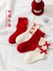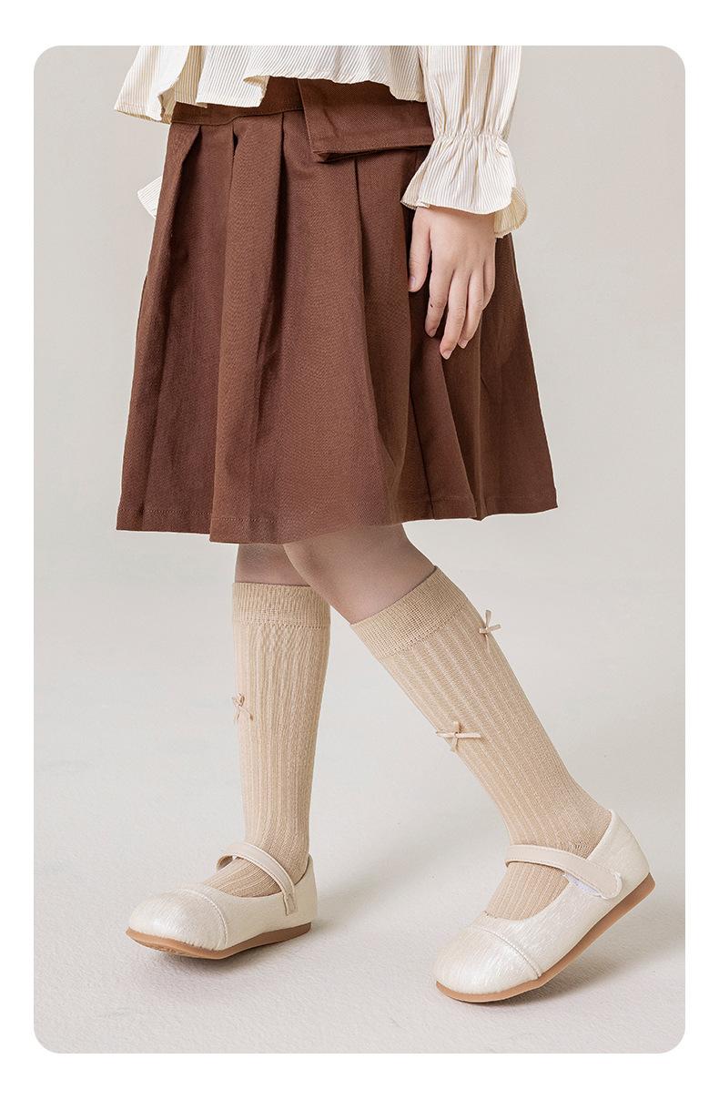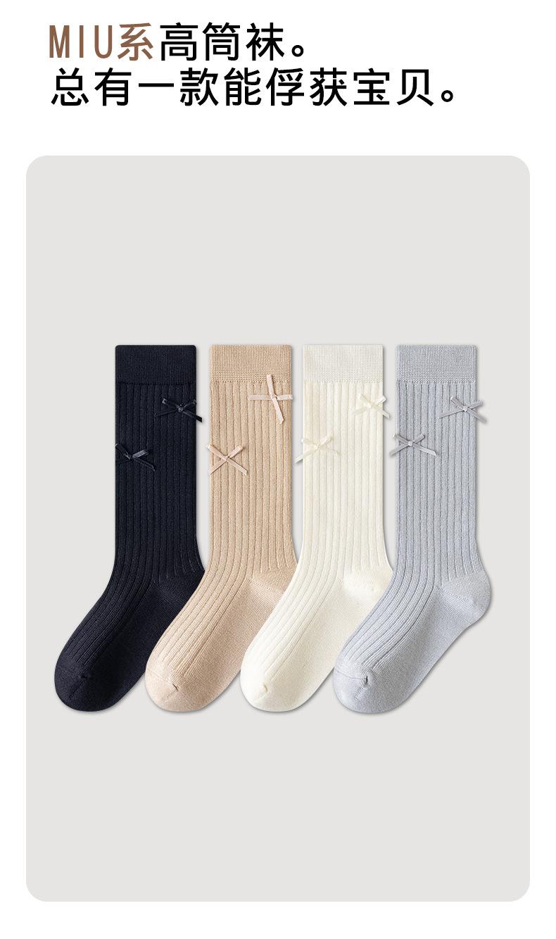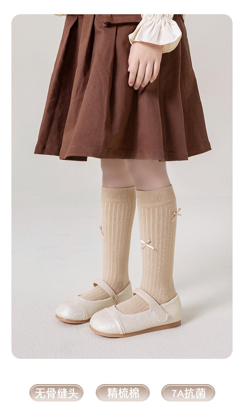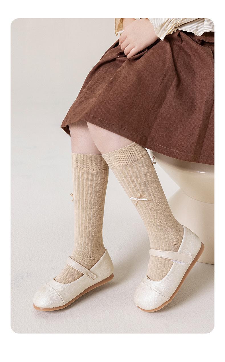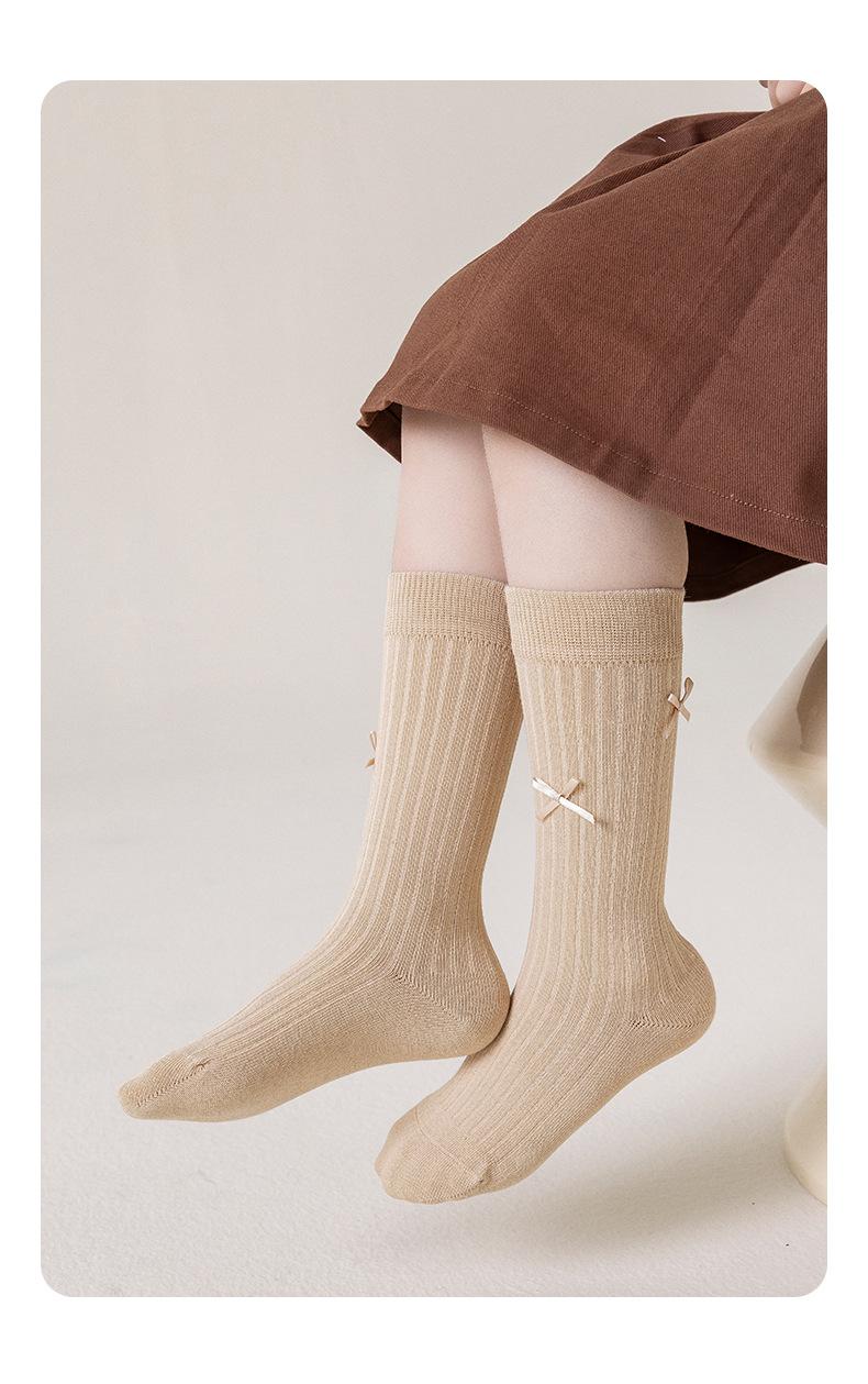Medias de Algodón Peinado para Niñas Otoño e Invierno Nuevo Color Puro Calcetines de Princesa Coreanos Calcetines de Invierno con Lazo a la Pantorrilla Modernos