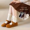 Calcetines para Niñas Otoño e Invierno Algodón Peinado Lazo Calcetines hasta la Mitad de la Pantorrilla para Niños Estilo Coreano Encaje Bordado Calcetines de Princesa