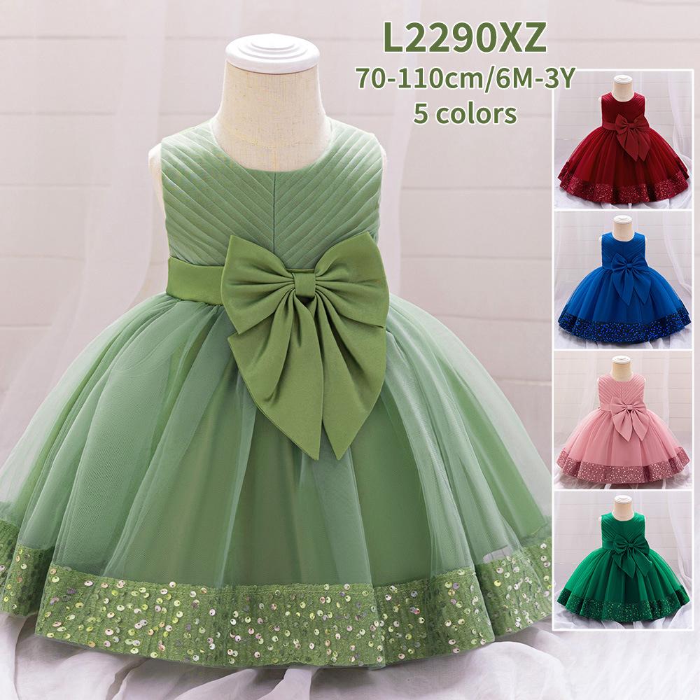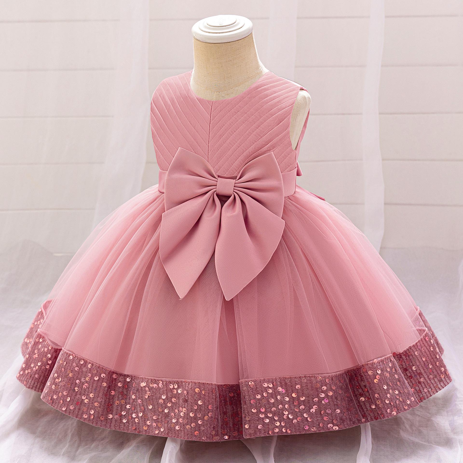 Vestido de princesa con lentejuelas y lazo para bebé de un año, vestido de fiesta de cumpleaños, vestido de actuación para niña.