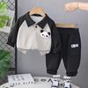 Ropa de primavera para niños 2024, nuevo traje de estilo occidental, ropa para niños de primavera y otoño, traje de dos piezas con cuello redondo y letras para bebés de un año