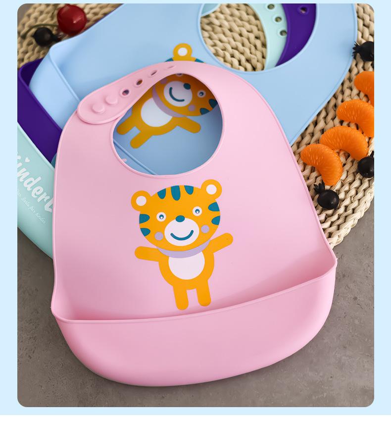 Babero de silicona para bebé, 100 % silicona de grado alimenticio, impermeable, fácil de limpiar, tamaño ajustable, babero para bebé infantil.