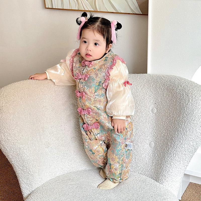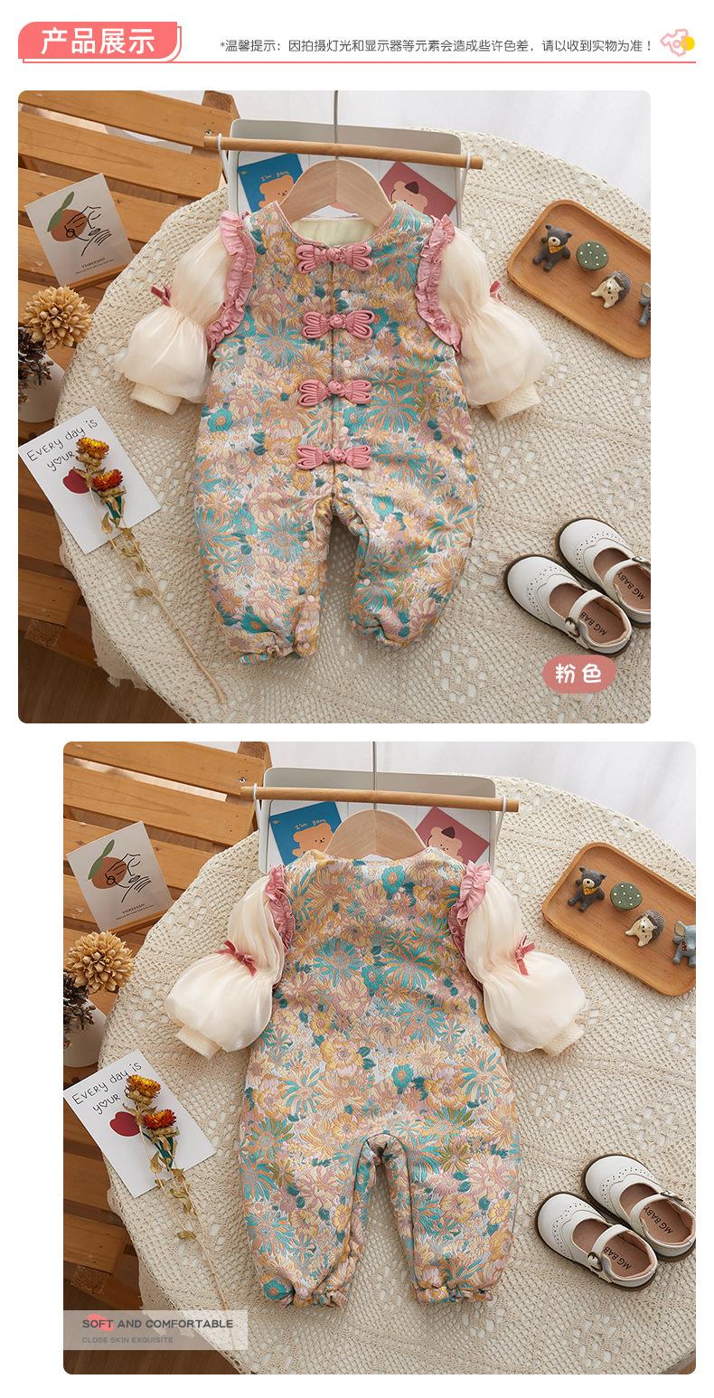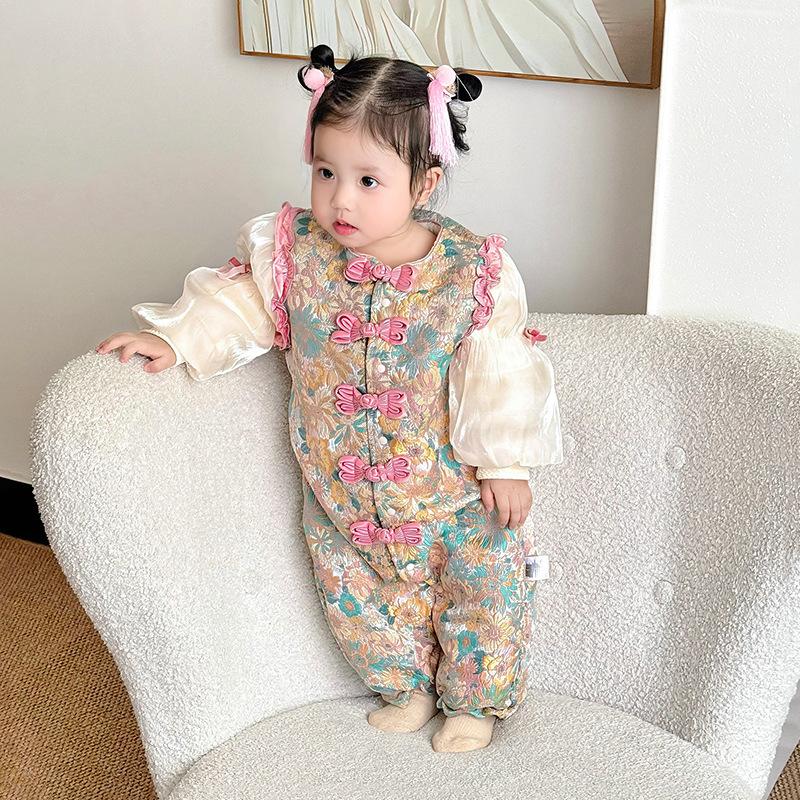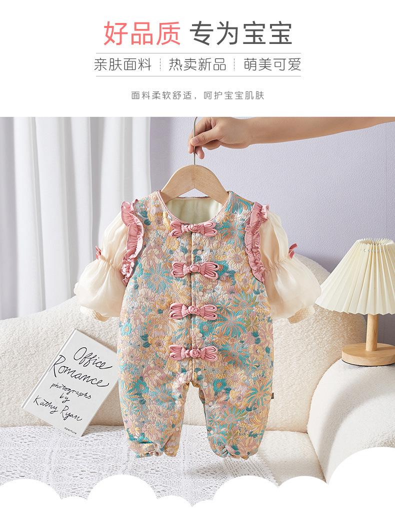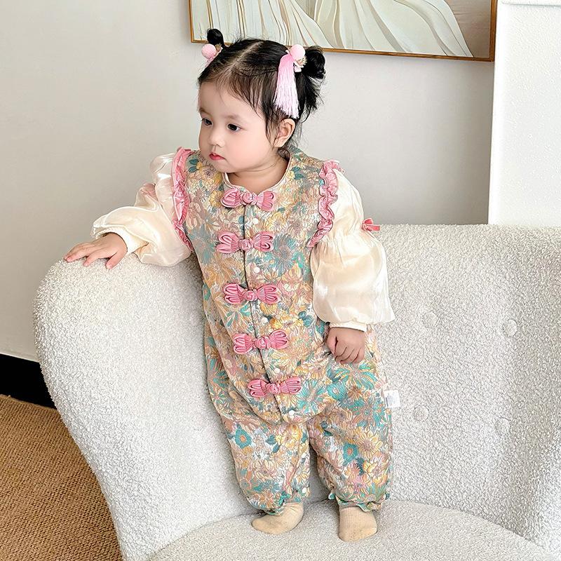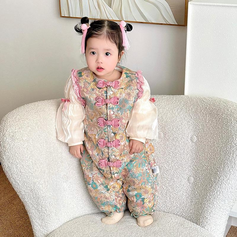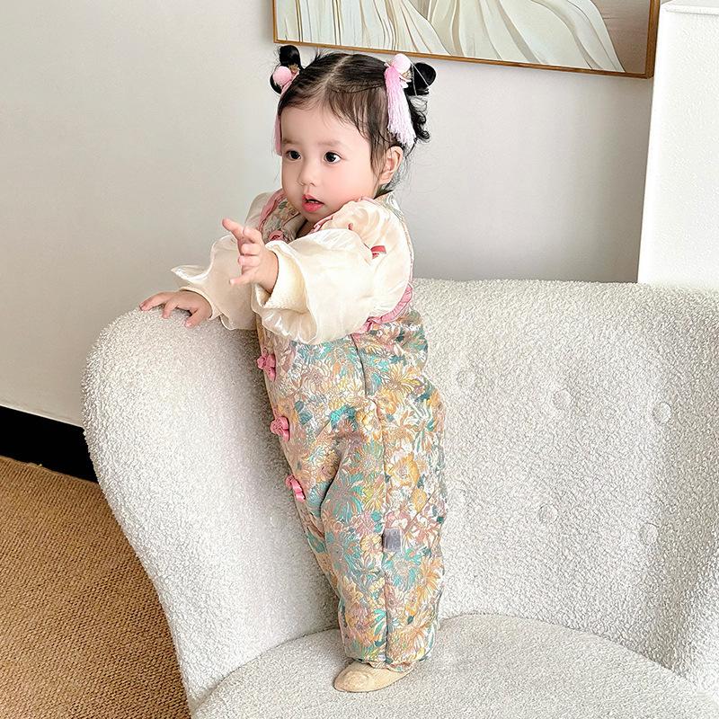 Ropa de bebé de invierno con forro polar, ropa de bebé de un solo cuerpo, ropa de estilo chino para recién nacidos, vestido de invierno para bebé de un año.