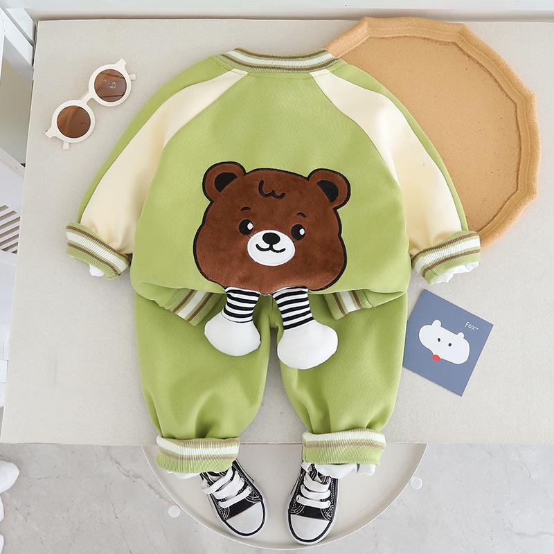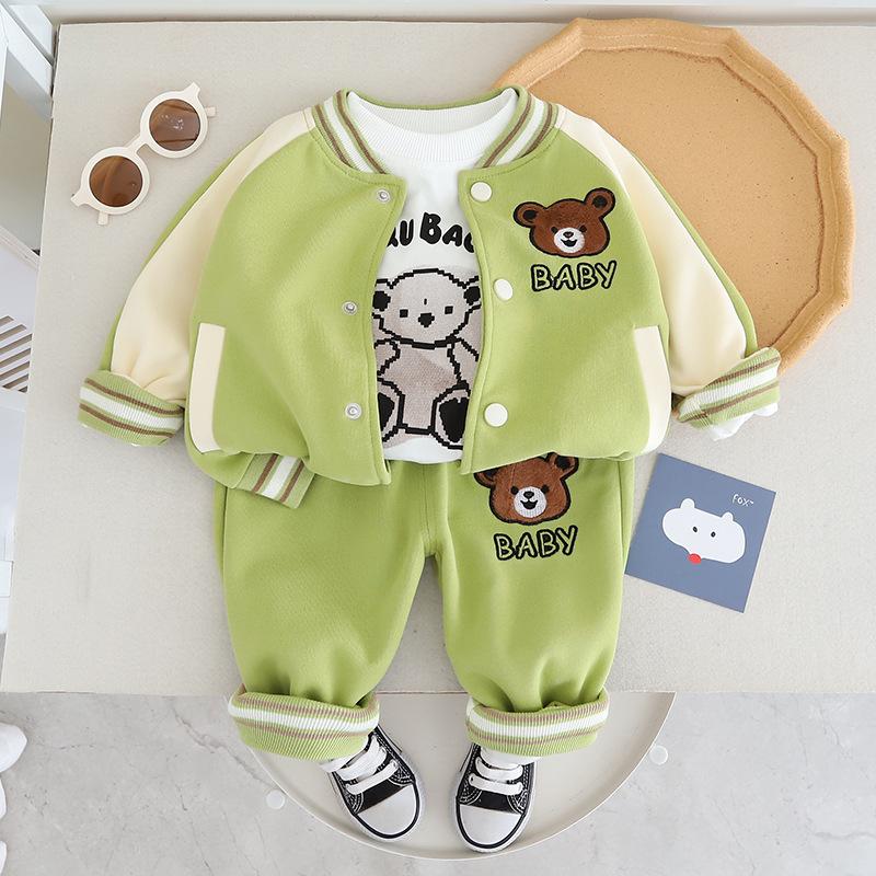 Long Sleeve Bear Baseball Suit Three-Piece Green
