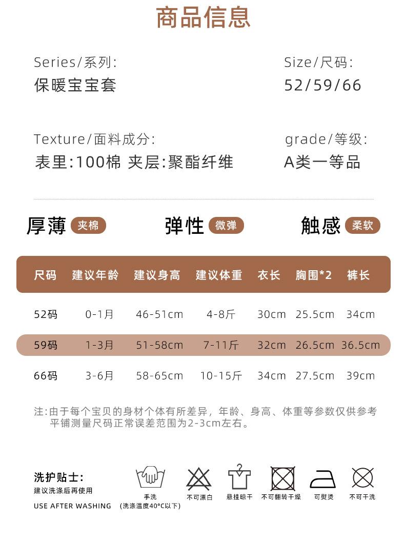 Traje para bebé recién nacido Otoño e Invierno Algodón puro Ropa de otoño para bebé recién nacido Ropa dividida Algodón Pijama cálido Ropa de primavera para hombre