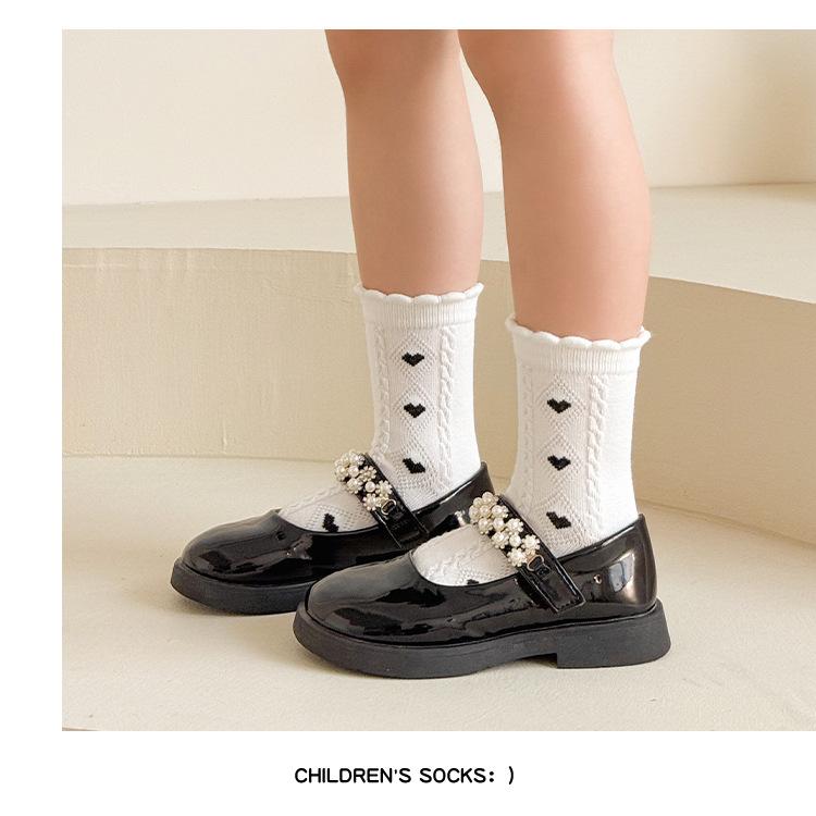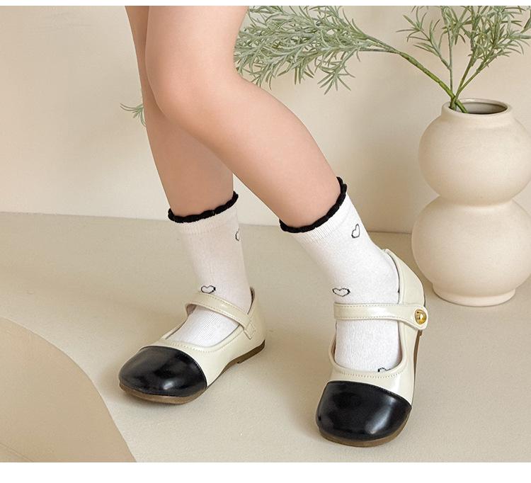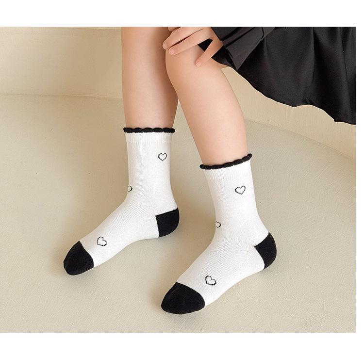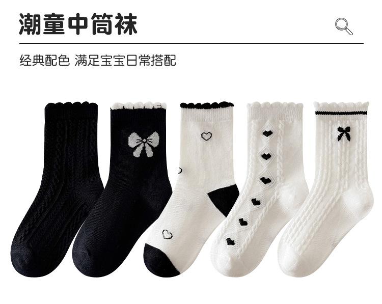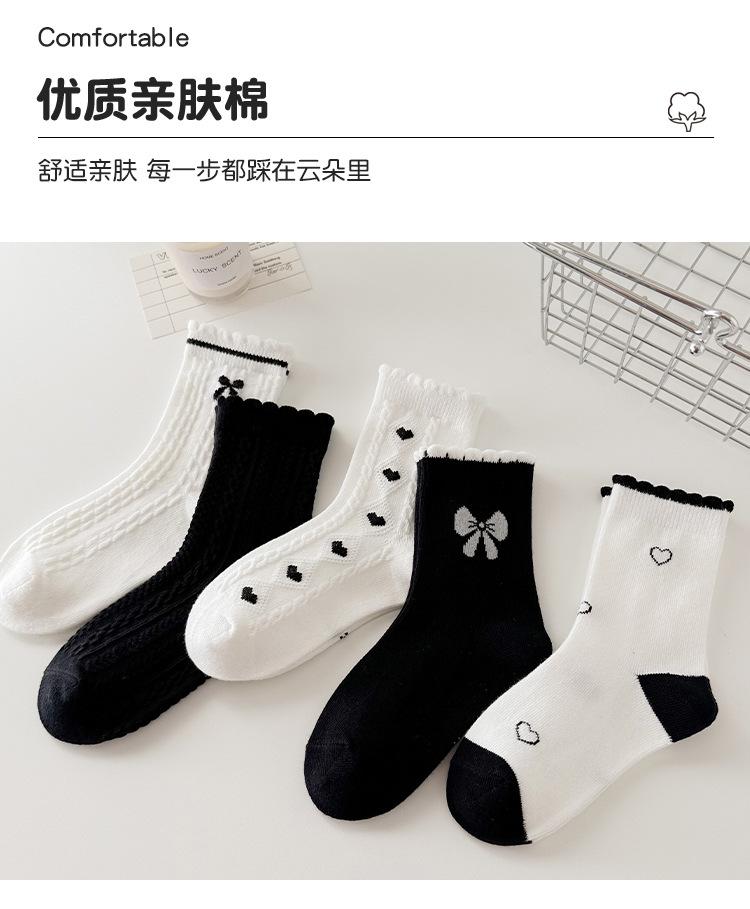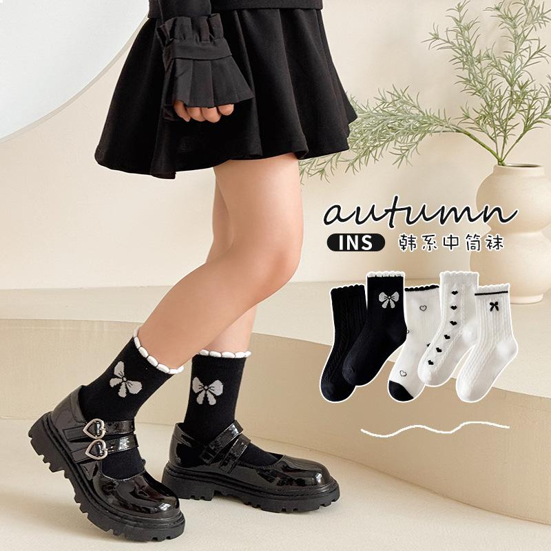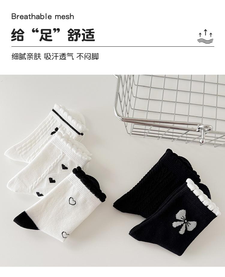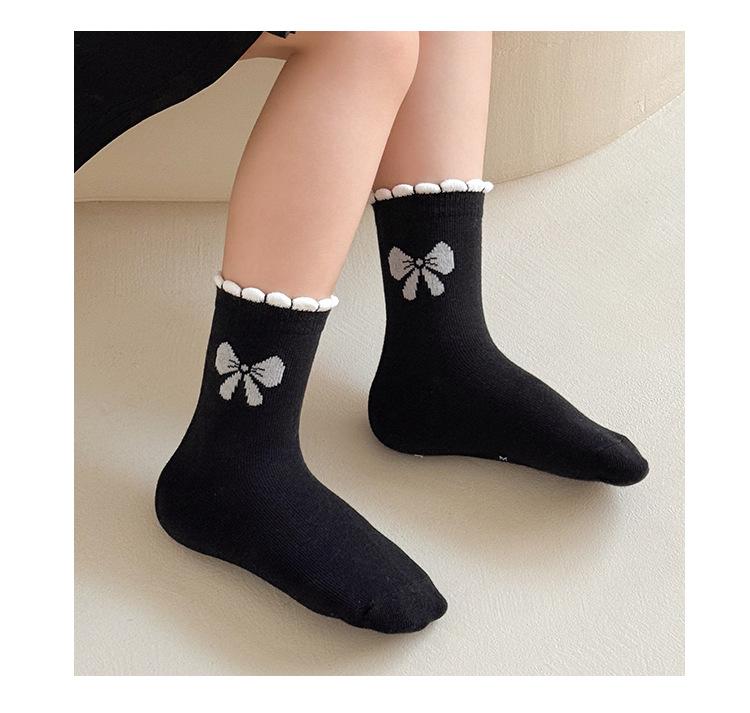 Calcetines de algodón para niñas, otoño e invierno, nuevos calcetines de tubo medio con lazo en blanco y negro, bonitos y dulces calcetines de princesa para estudiantes.