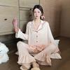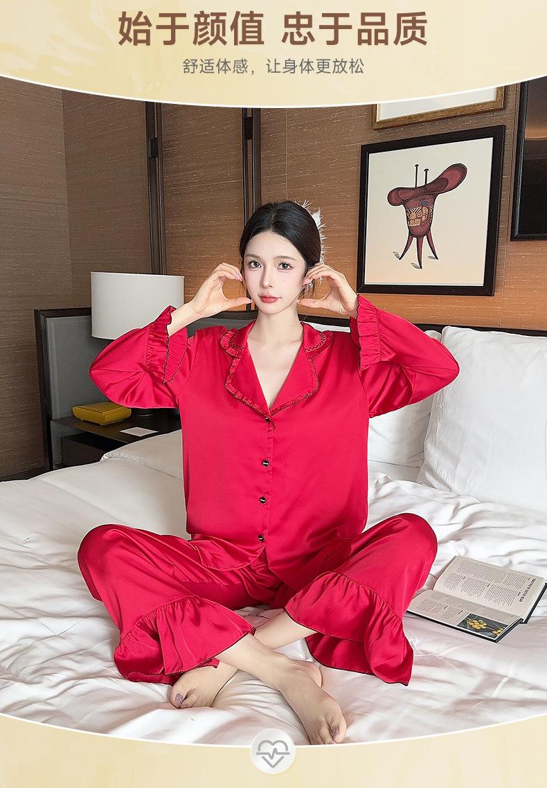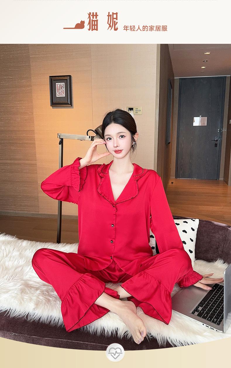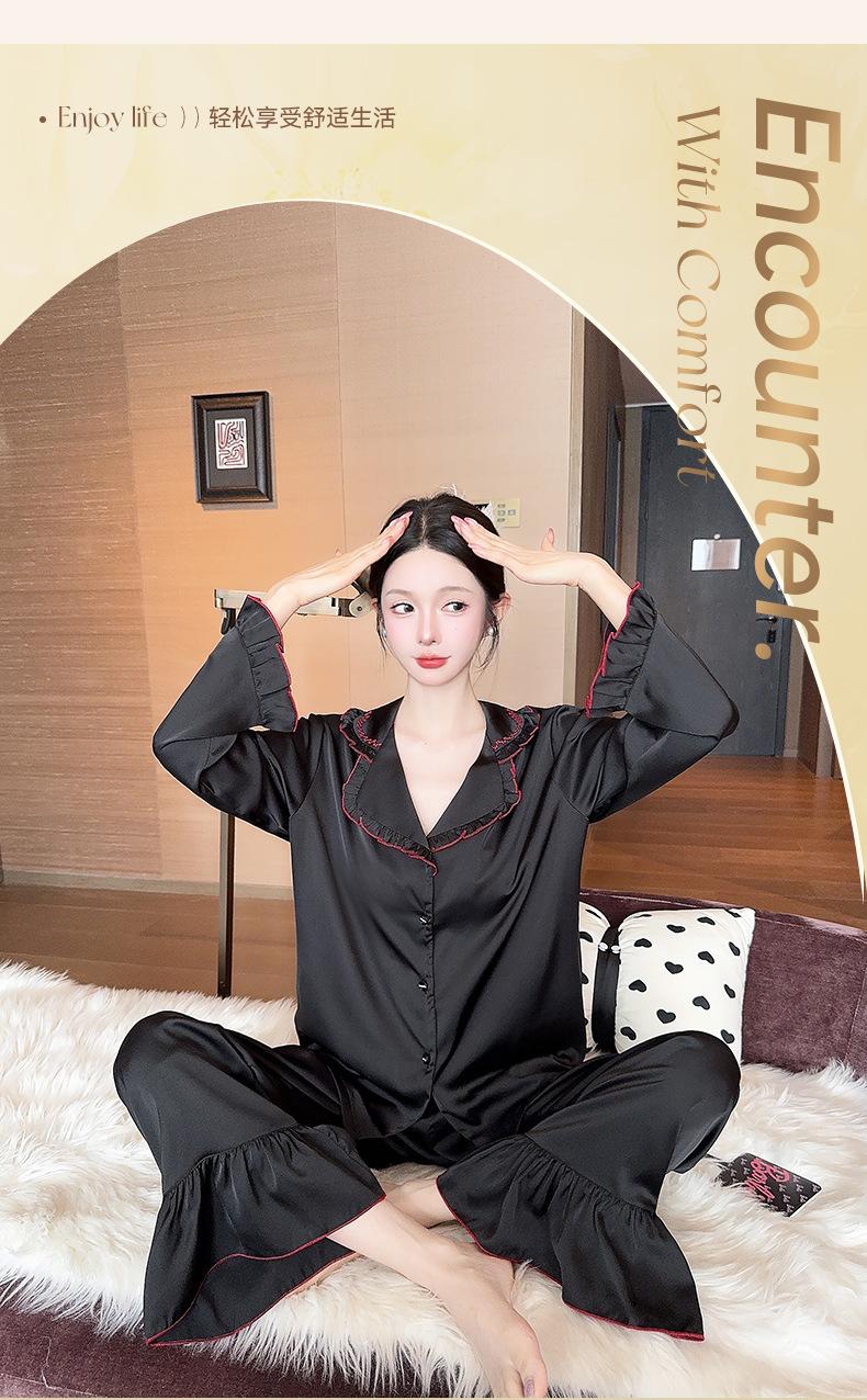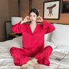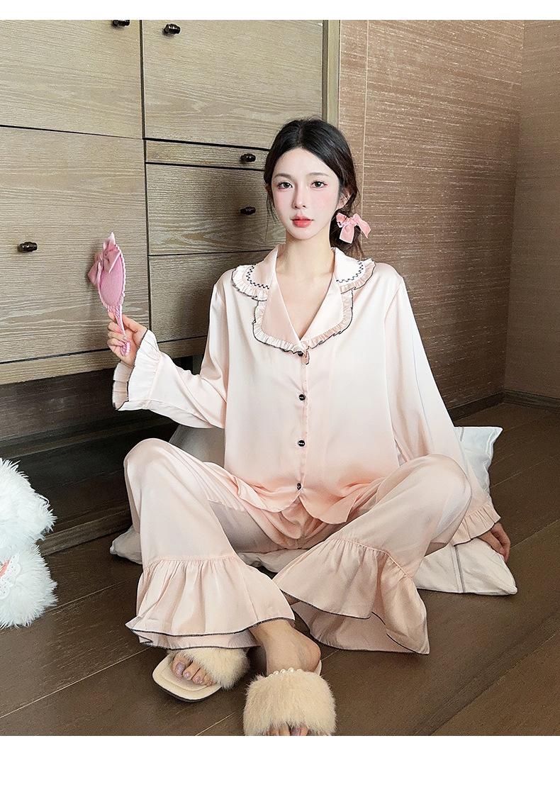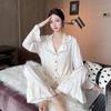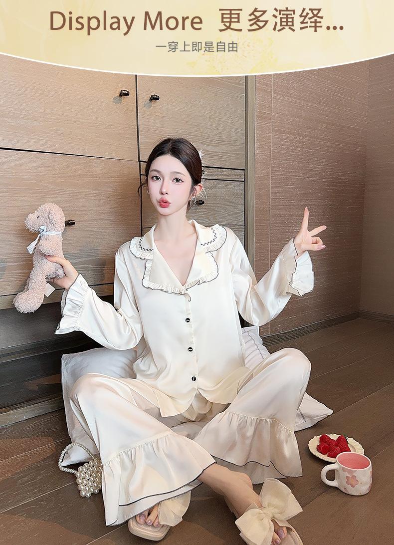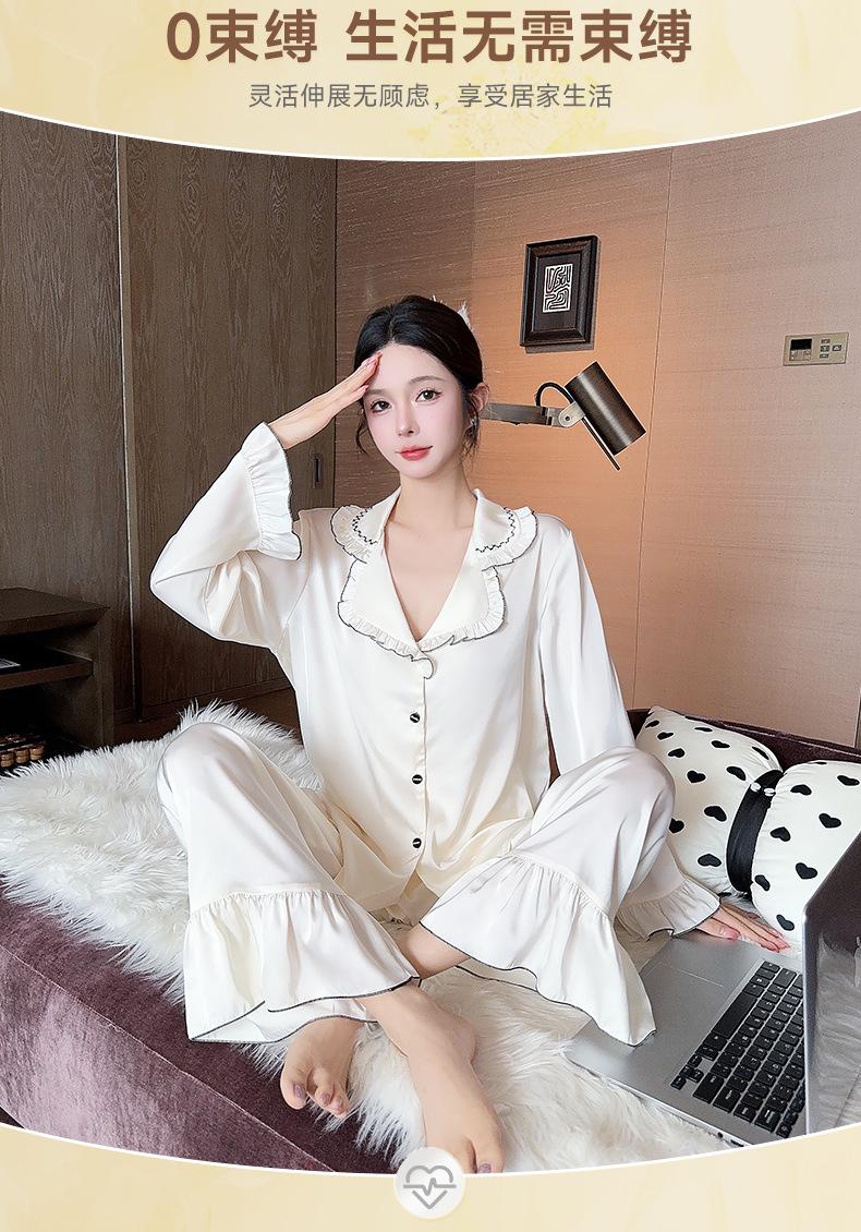 Nuevo conjunto de pijama fino de manga larga de seda de hielo para mujer de primavera y verano Ropa de casa de alta calidad estilo coreano para niña dulce para uso exterior