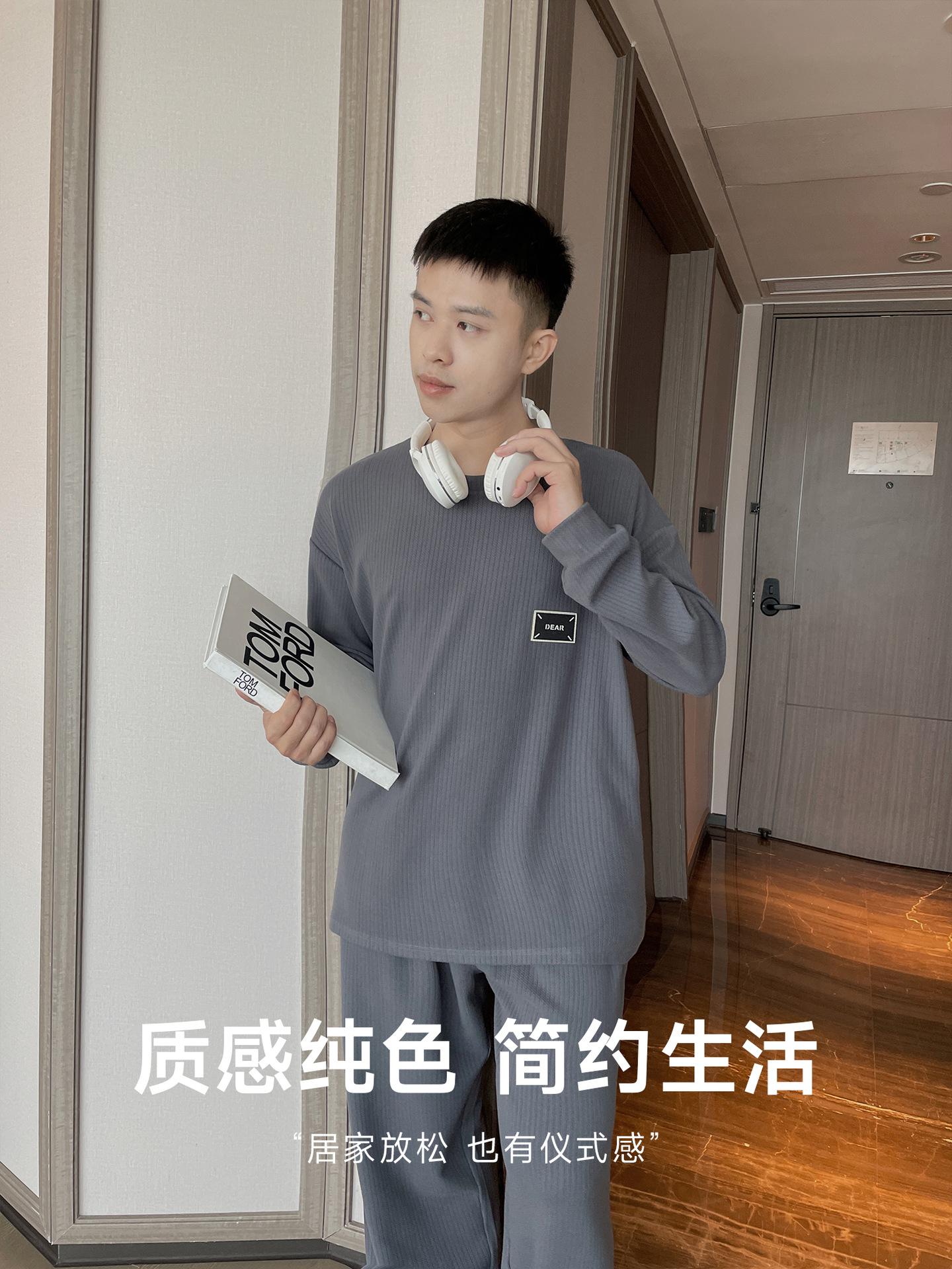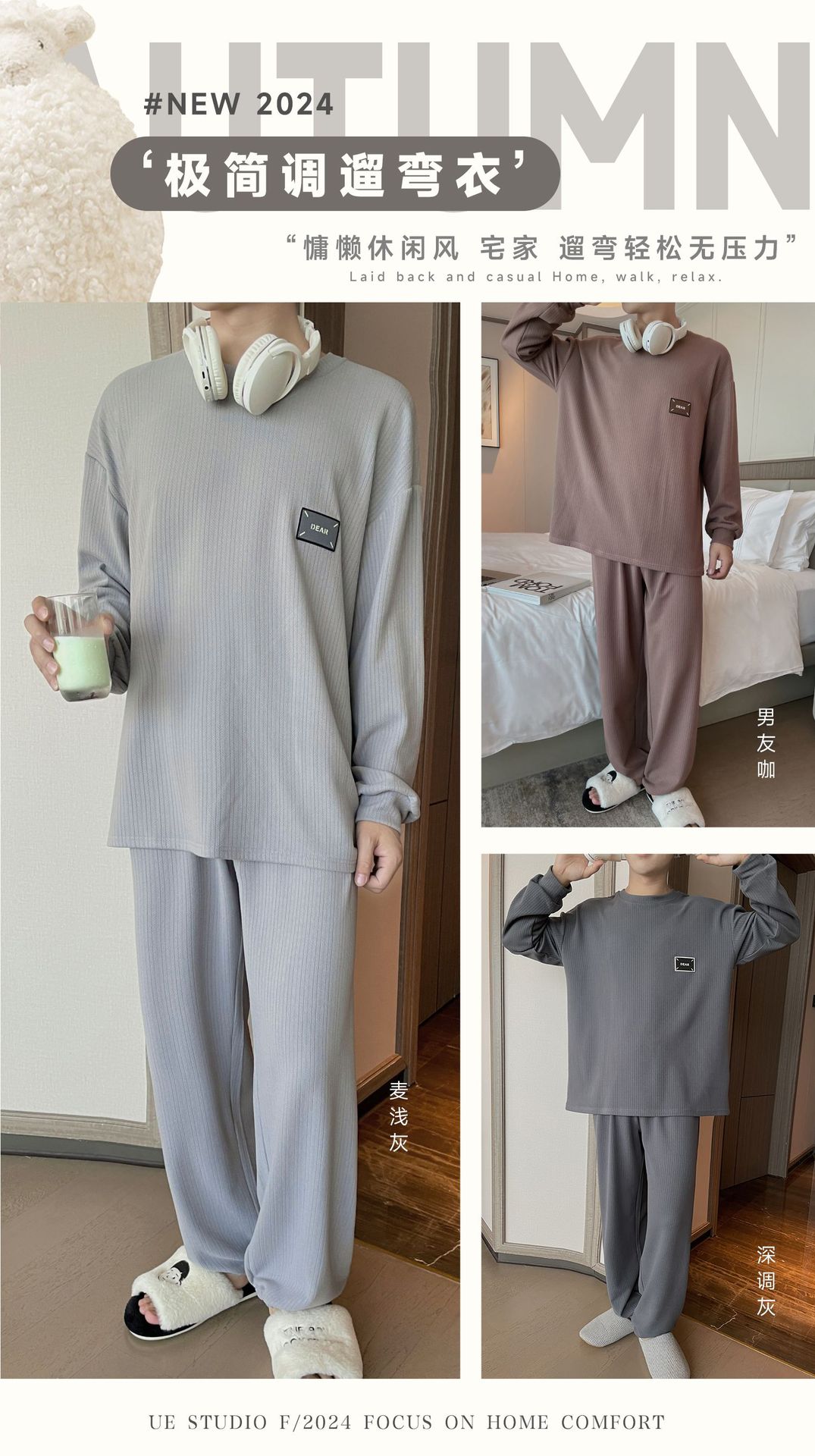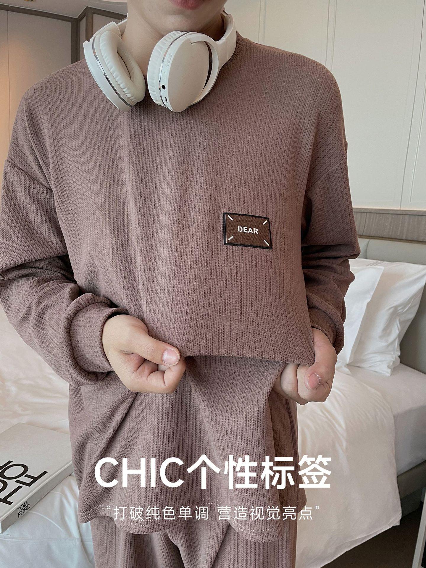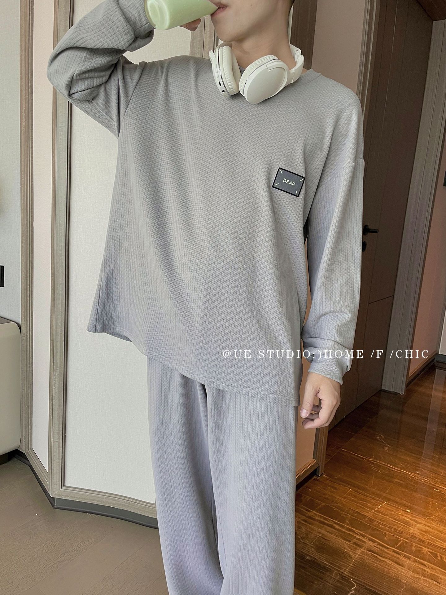 Pijamas nuevos de primavera y otoño para hombre, jersey de manga larga, holgados, casuales, sencillos y de alta gama, conjunto de dos piezas para estar en casa que se puede usar en el exterior